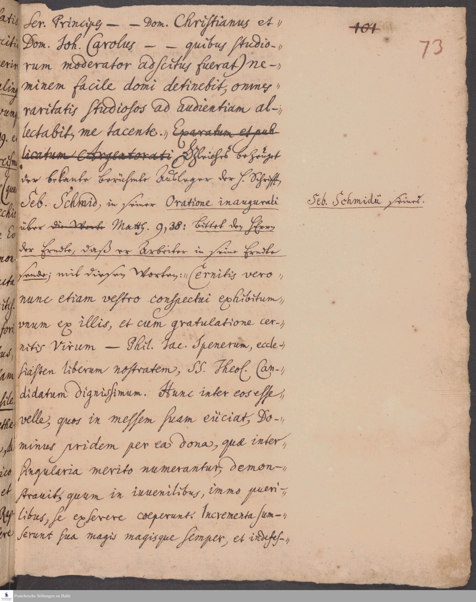 Fragment einer Biografie von Philipp Jakob Spener, verfasst von Carl Hildebrand von Canstein.