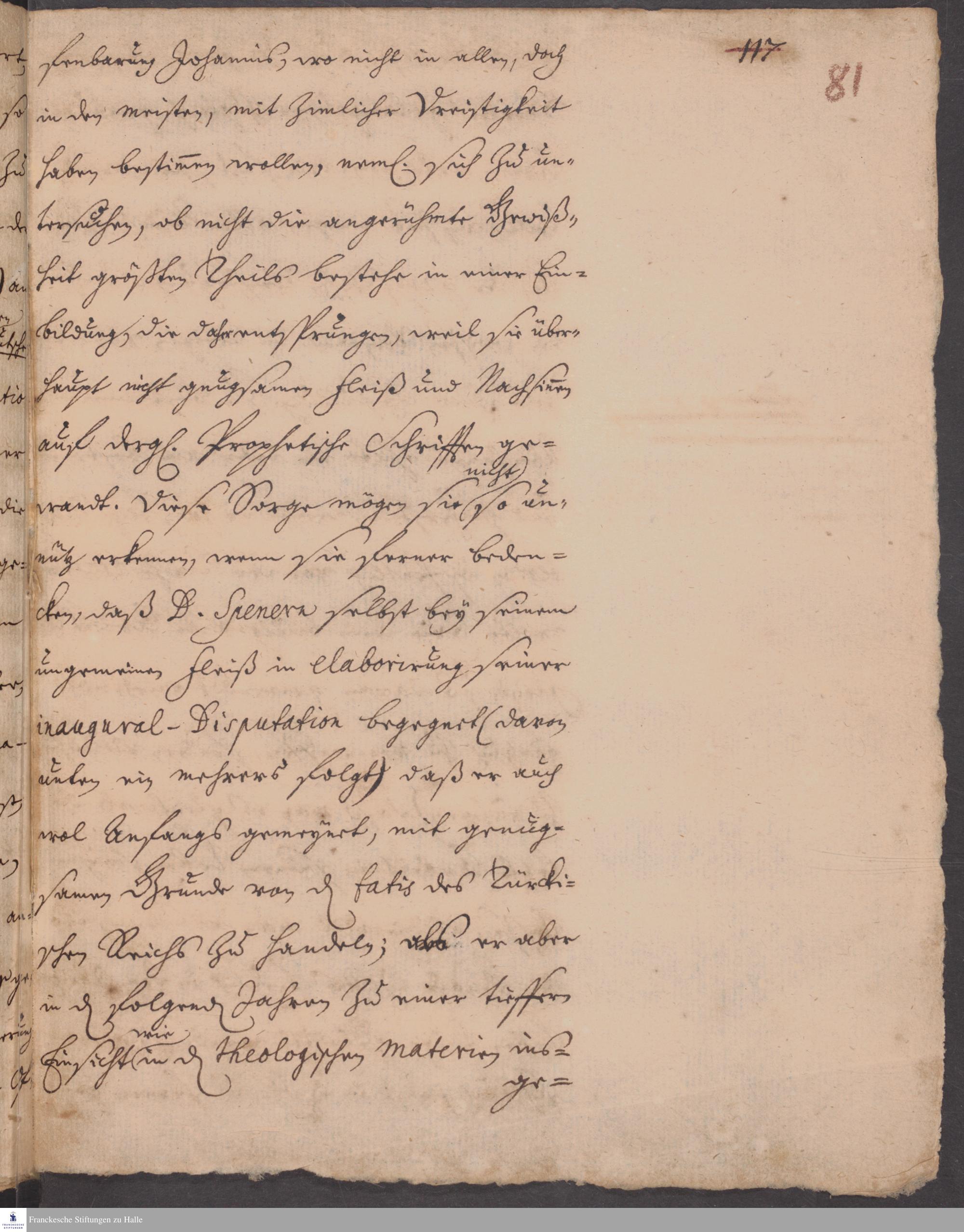 Fragment einer Biografie von Philipp Jakob Spener, verfasst von Carl Hildebrand von Canstein.