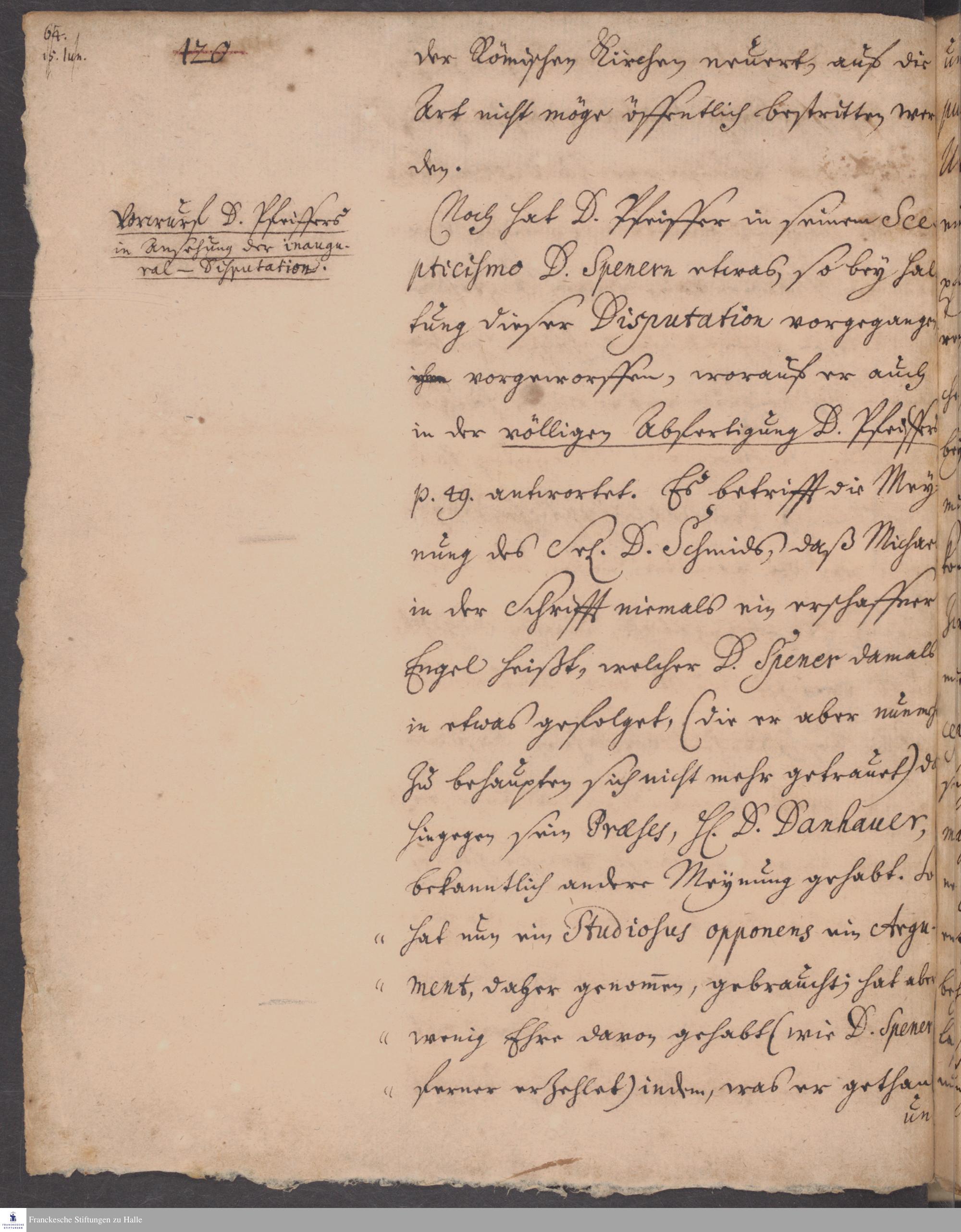 Fragment einer Biografie von Philipp Jakob Spener, verfasst von Carl Hildebrand von Canstein.