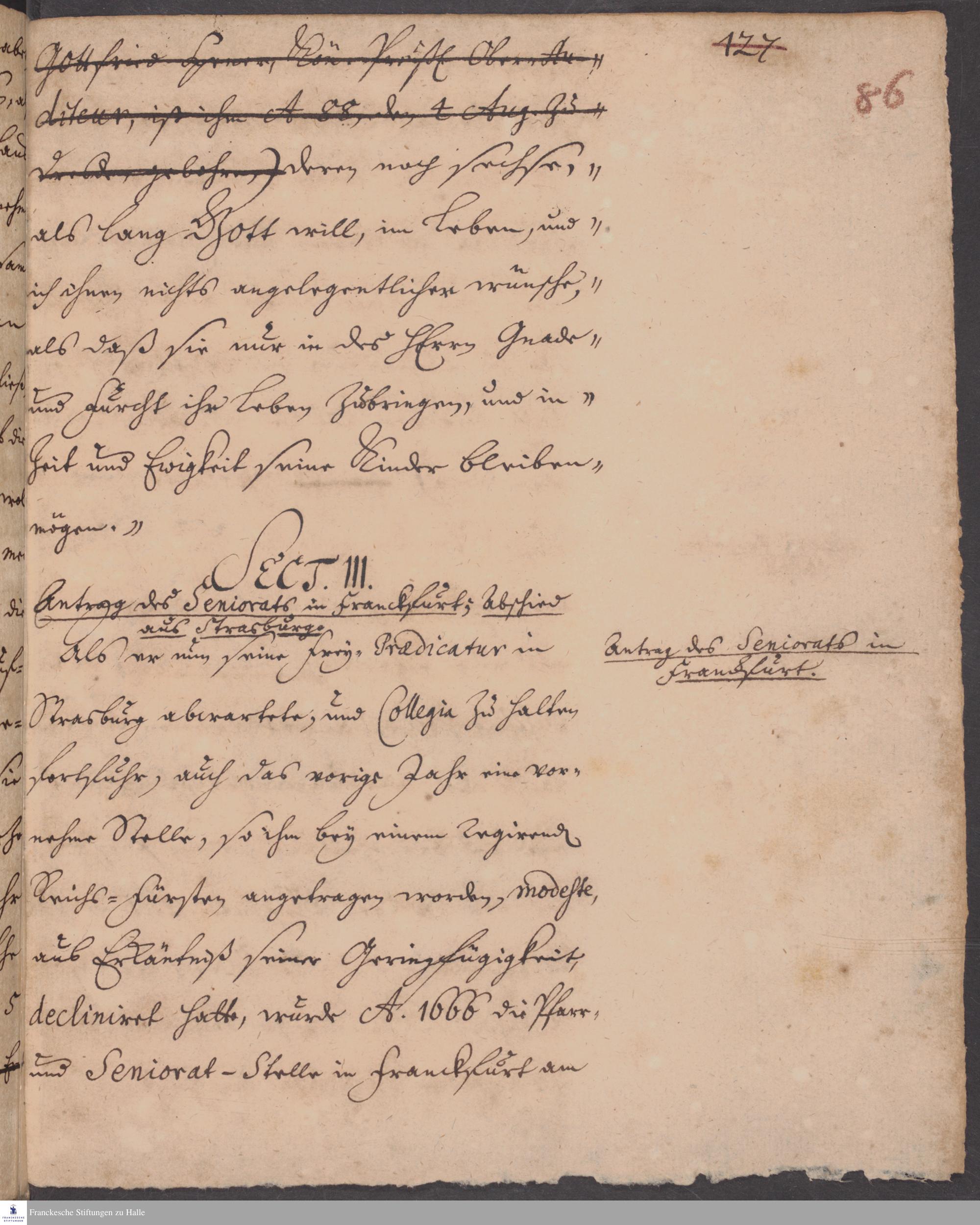 Sect. III. Antrag des Seniorats in Franckfurt; Abschied aus Strasburg.