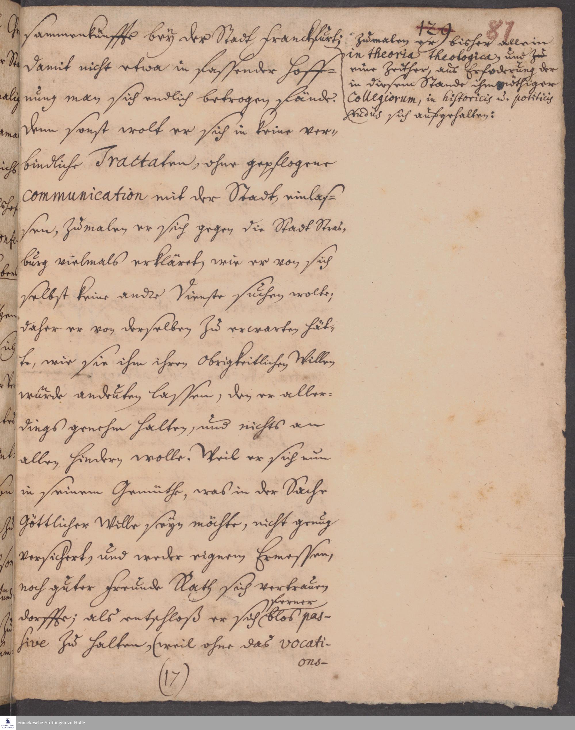 Fragment einer Biografie von Philipp Jakob Spener, verfasst von Carl Hildebrand von Canstein.