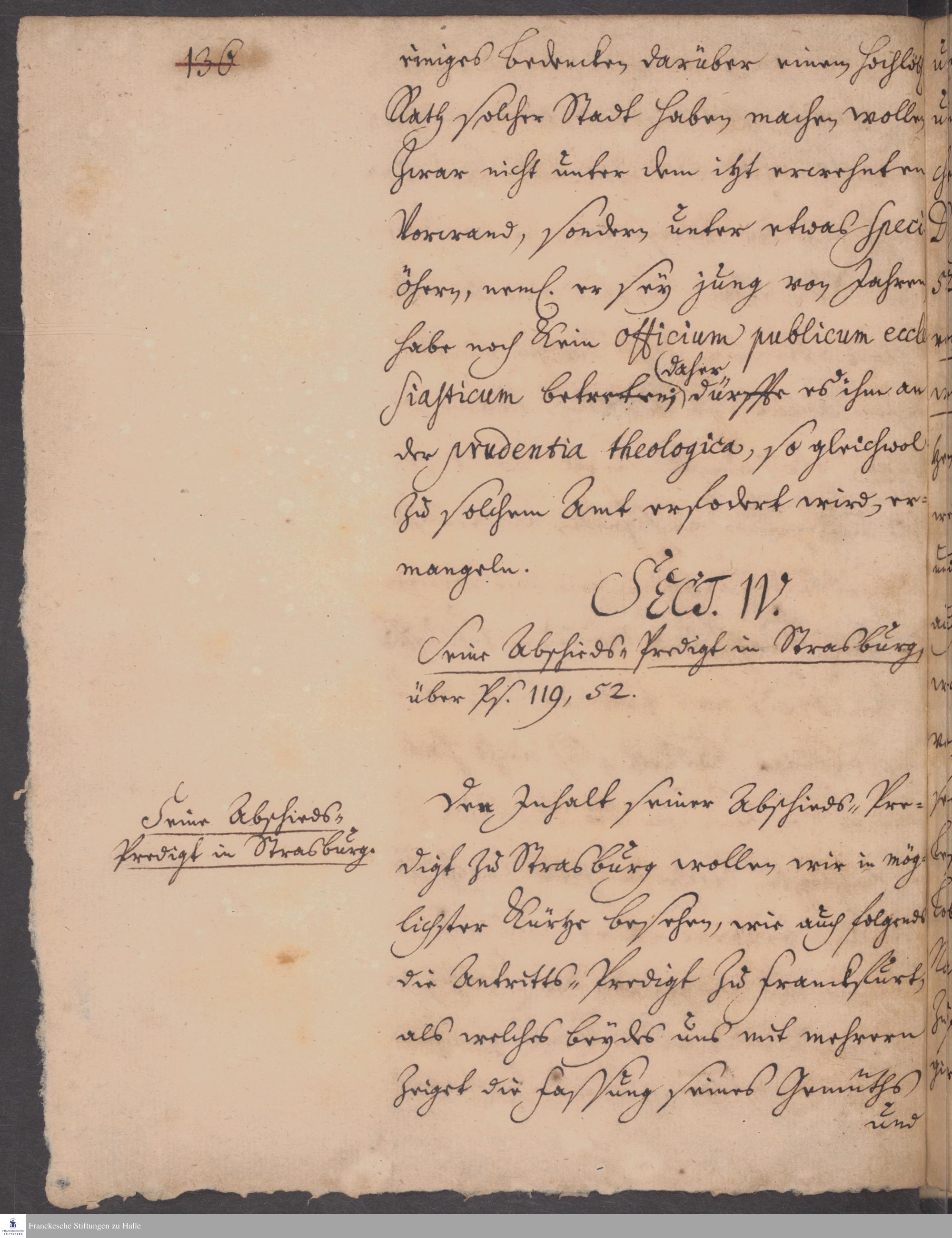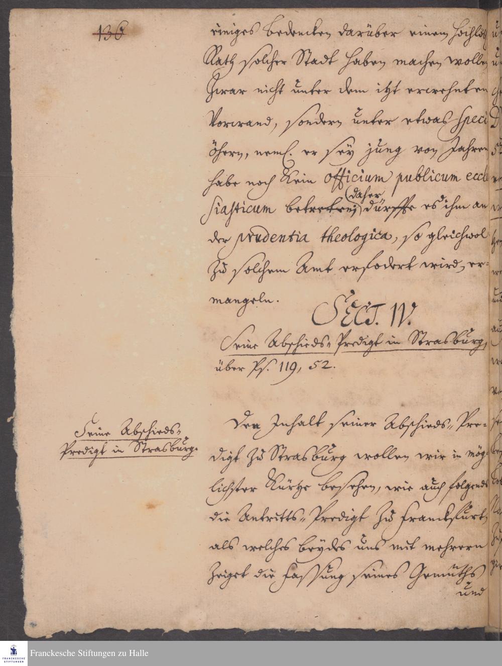 Sect: IV. Seine Abschiedspredigt in Strasburg, über Ps. 119, 52.