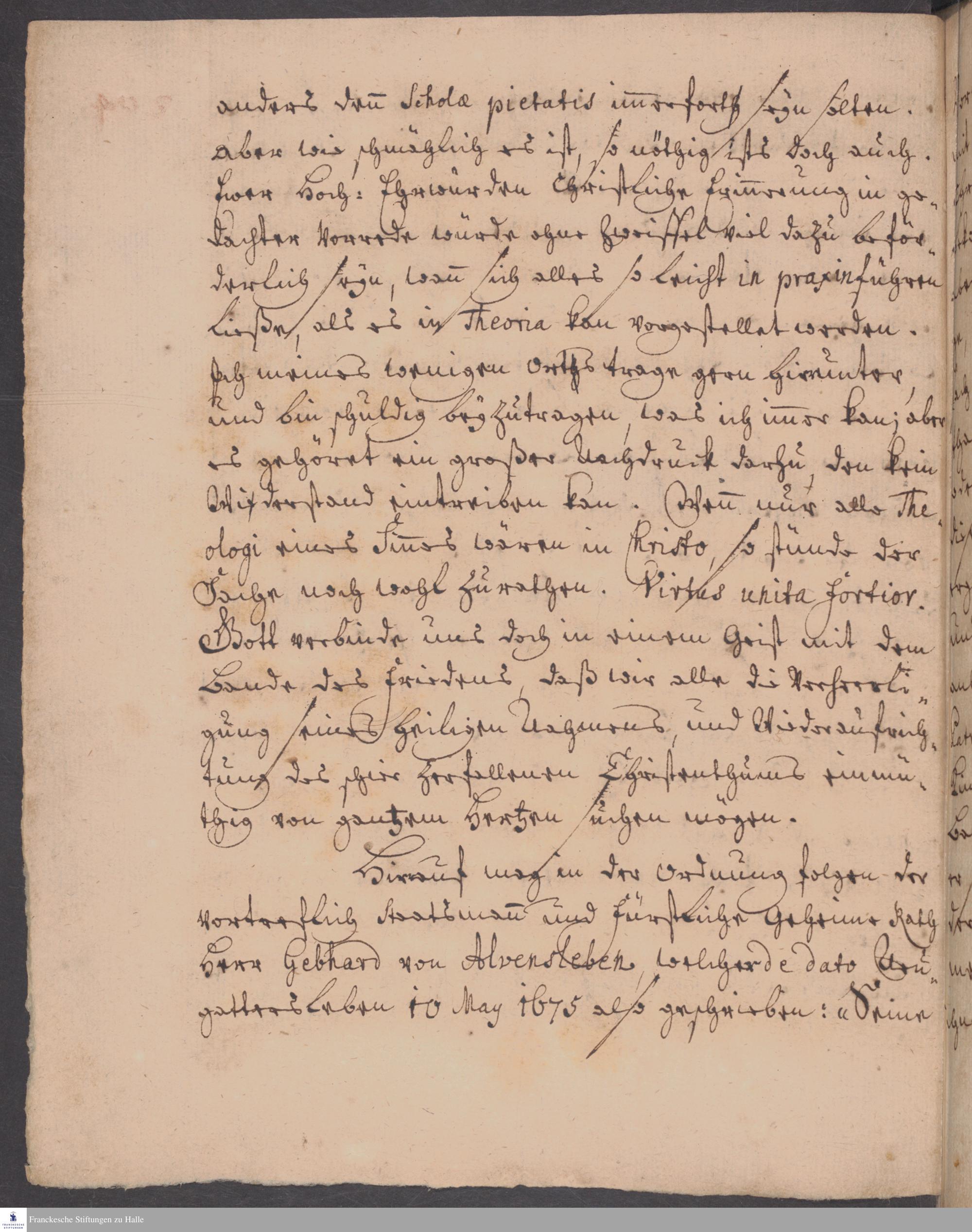 Fragment einer Biografie von Philipp Jakob Spener, verfasst von Carl Hildebrand von Canstein.