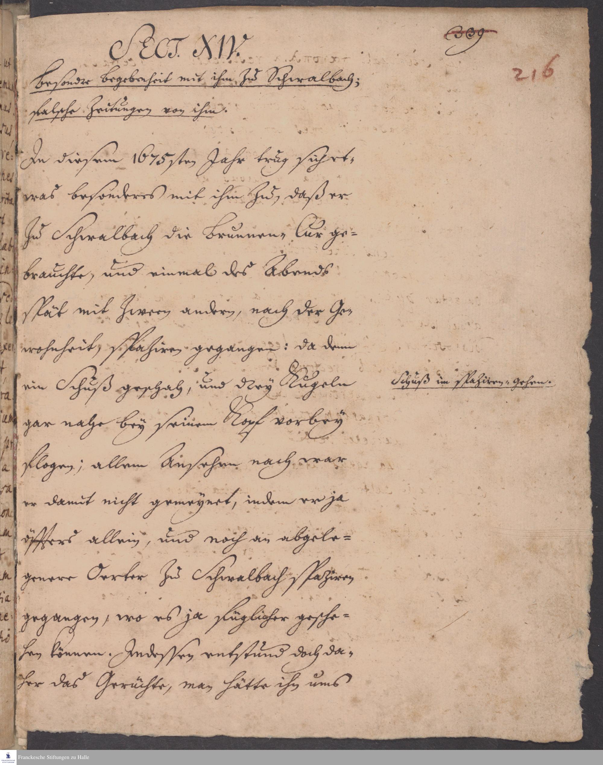 Fragment einer Biografie von Philipp Jakob Spener, verfasst von Carl Hildebrand von Canstein.