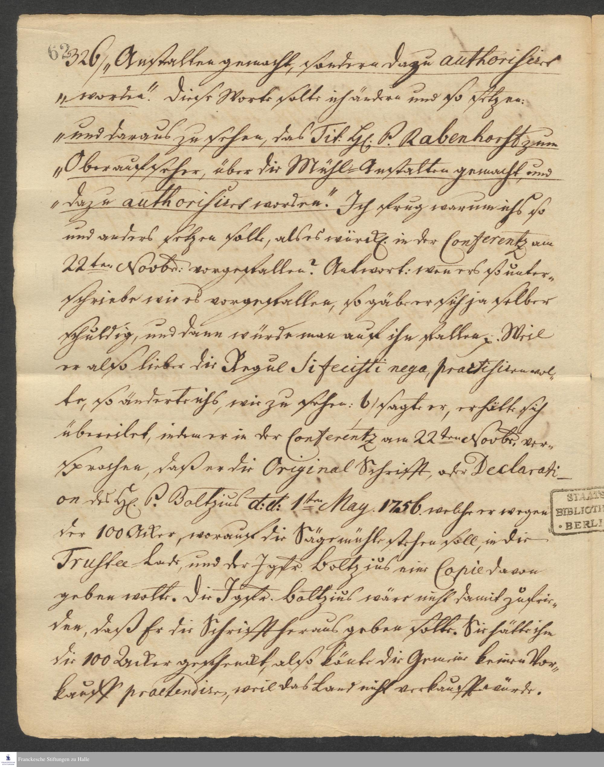 Fragment eines Tagebuches von Heinrich Melchior Mühlenberg.