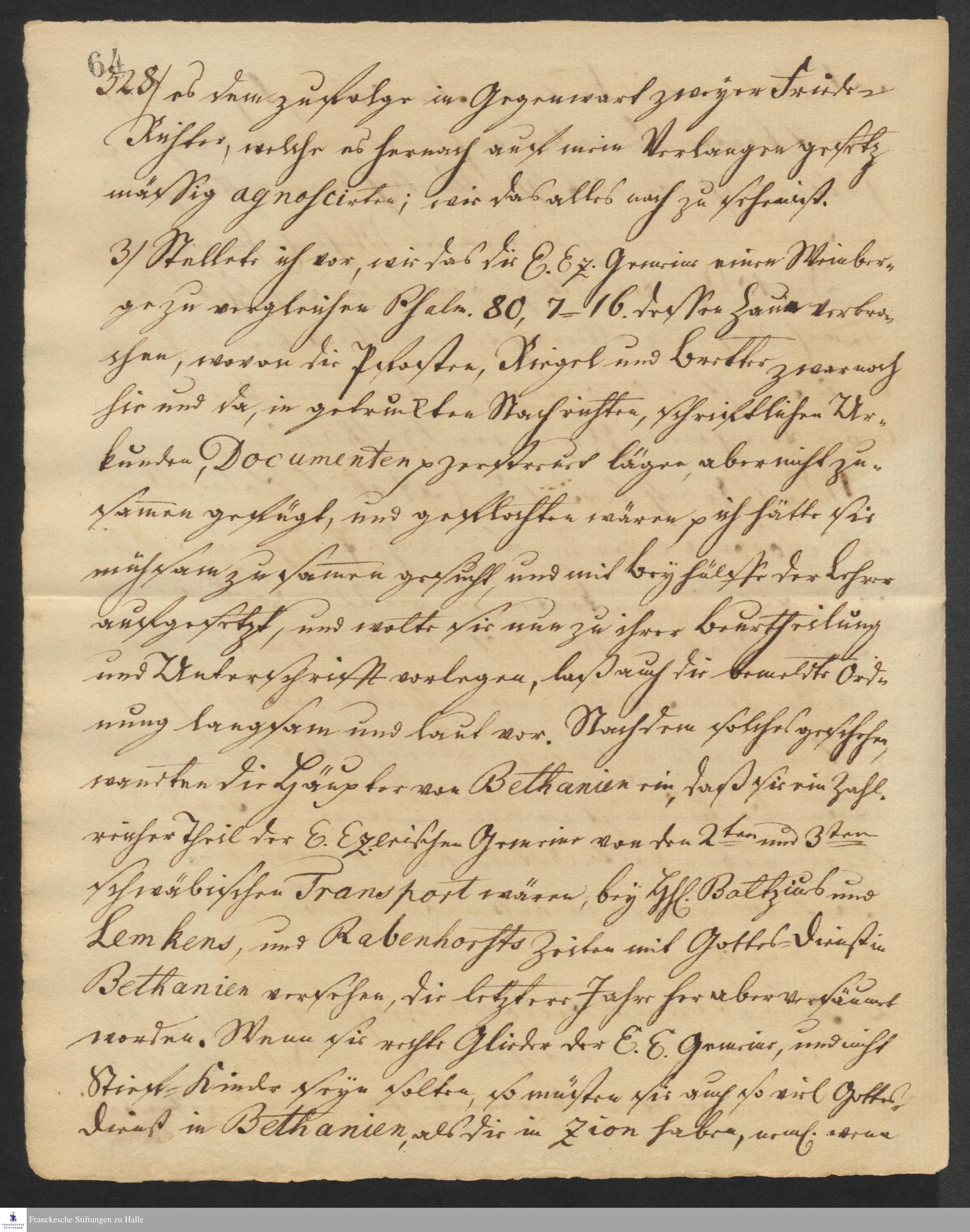 Fragment eines Tagebuches von Heinrich Melchior Mühlenberg.