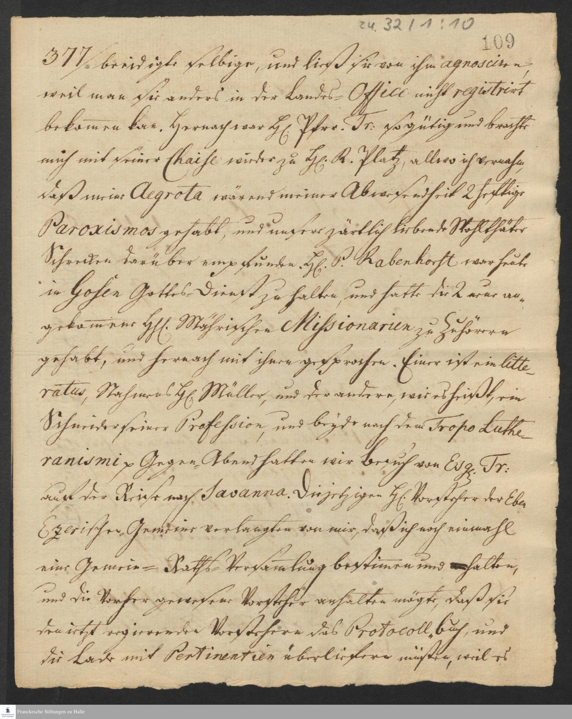 Fragment eines Tagebuches von Heinrich Melchior Mühlenberg.