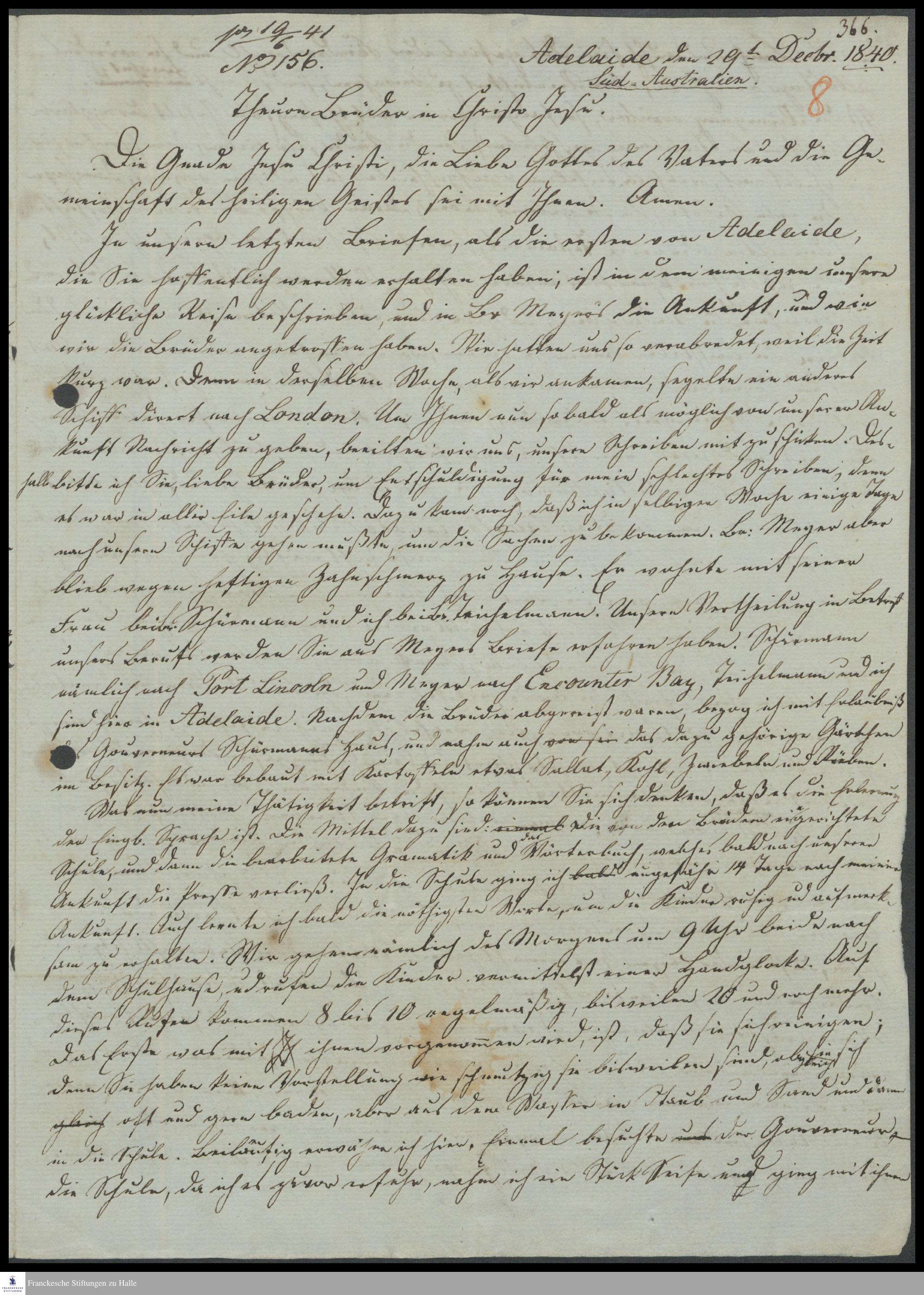 Brief von Samuel Gottlieb Klose an das Komitee der ev.-luth. Missionsgesellschaft Dresden.