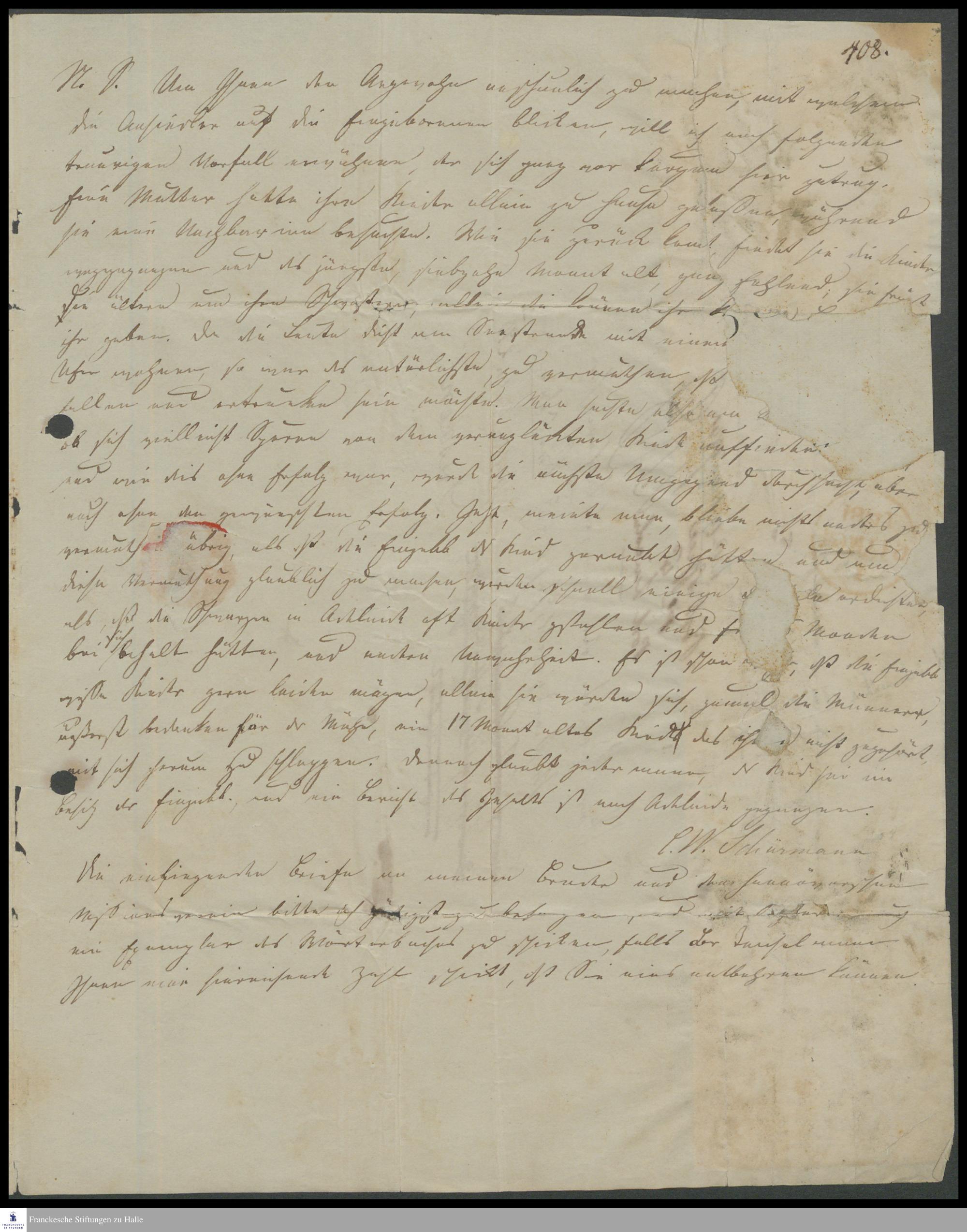 Brief von Clamor Wilhelm Schürmann an das Komitee der ev.-luth. Missionsgesellschaft Dresden.