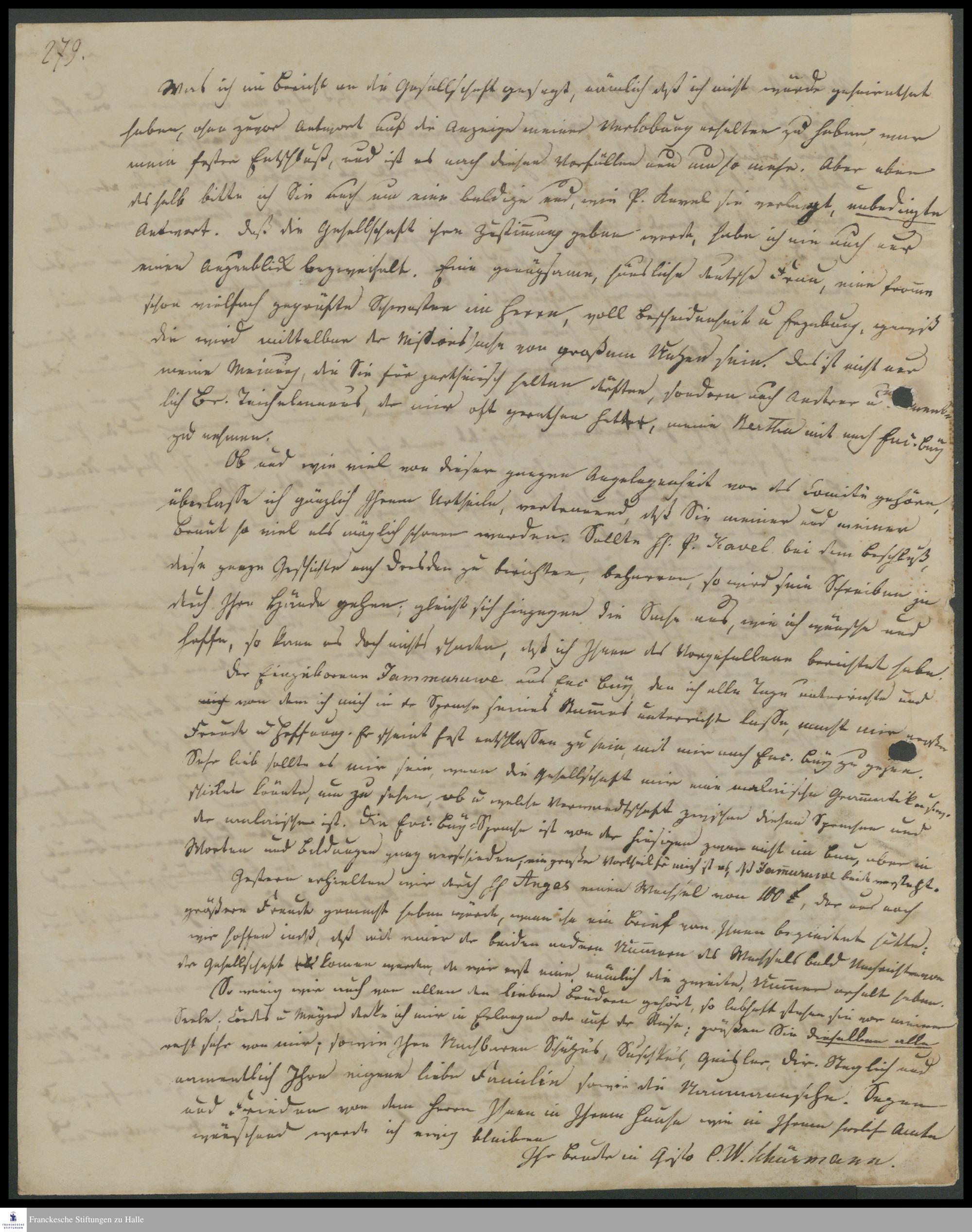Brief von Clamor Wilhelm Schürmann an Johann Georg Wermelskirch.