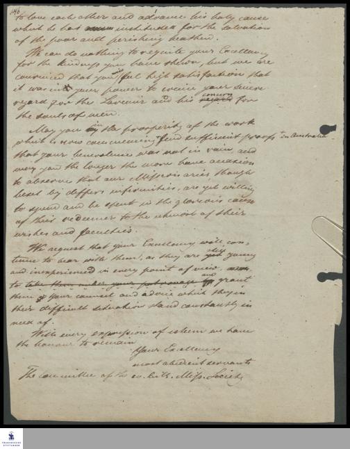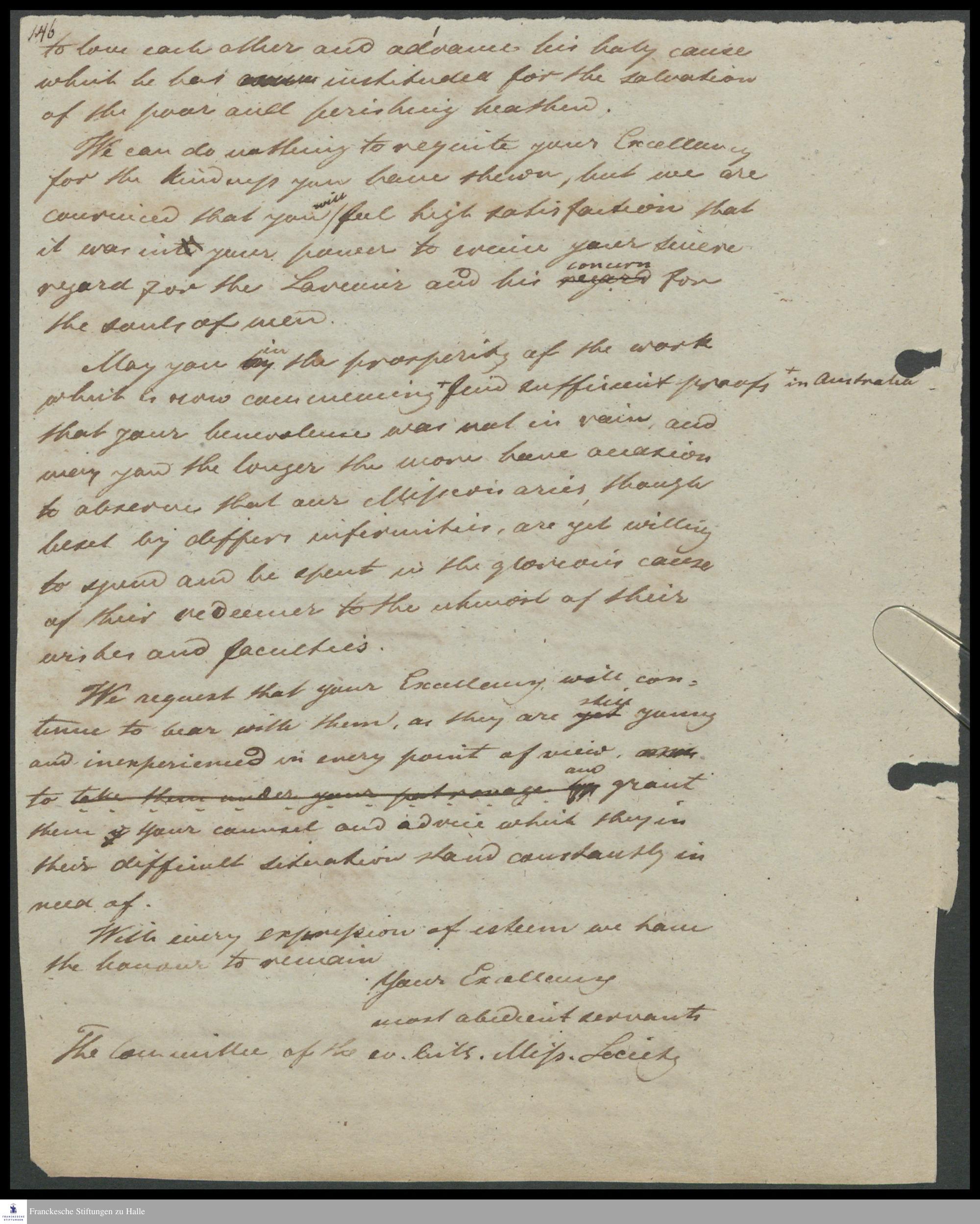 Brief des Komitees der ev.-luth. Missionsgesellschaft Dresden an Gouverneur George Gawler.