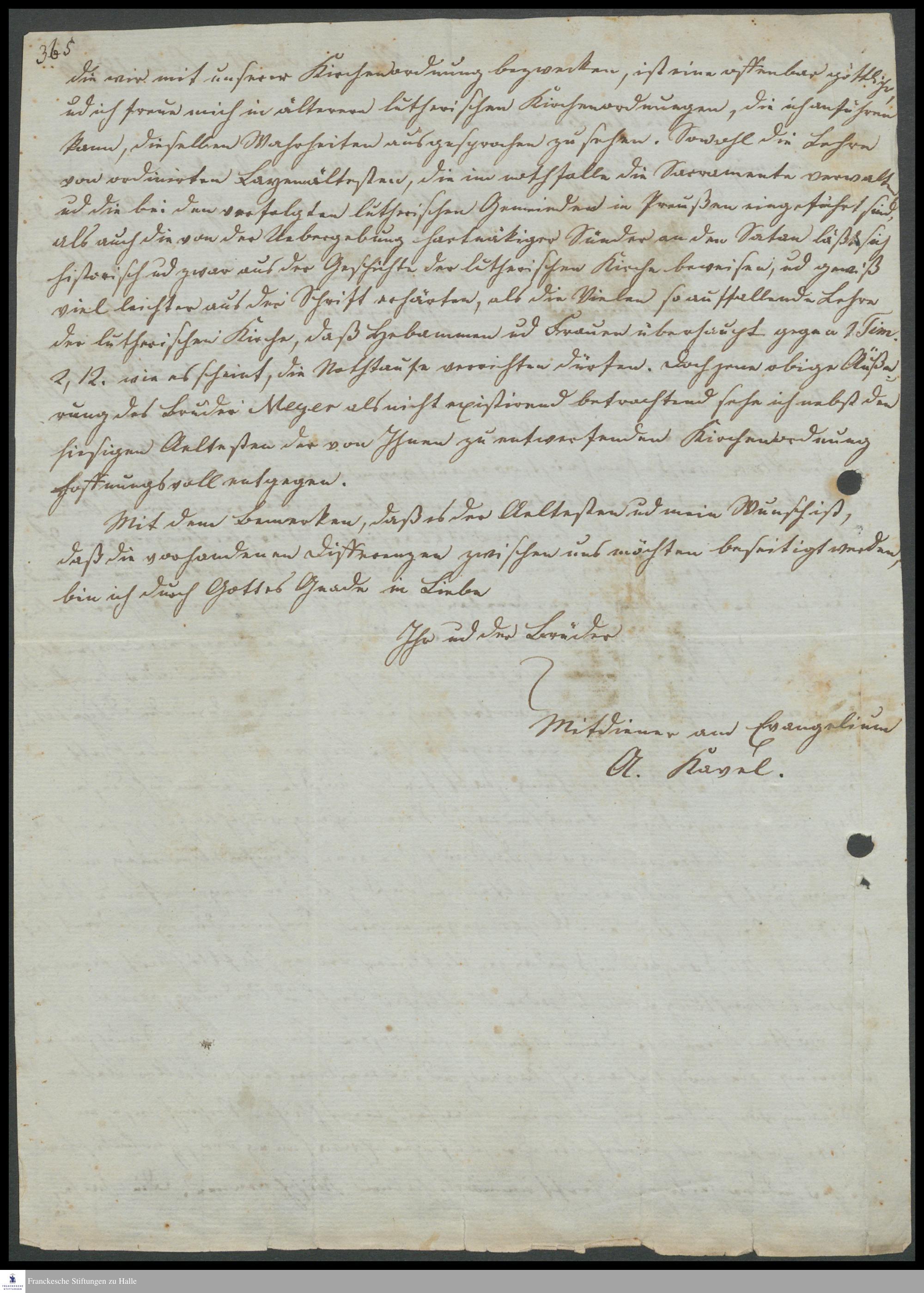 Brief von August Ludwig Christian Kavel an das Komitee der ev.-luth. Missionsgesellschaft Dresden.