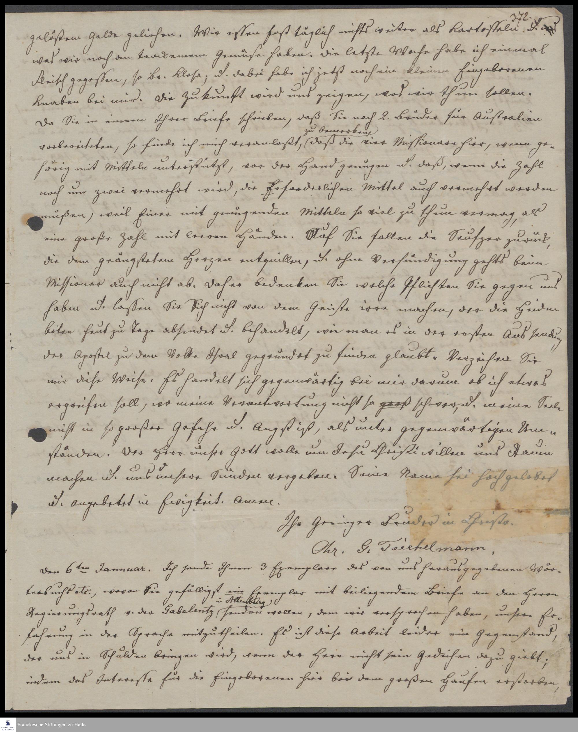 Brief von Christian Gottlob Teichelmann an das Komitee der ev.-luth. Missionsgesellschaft Dresden.