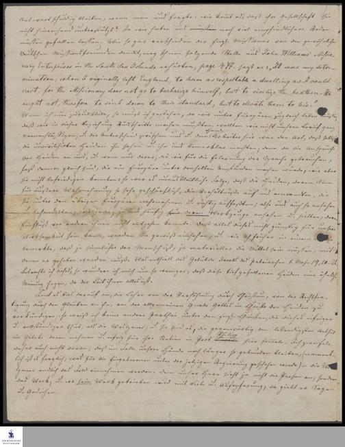 Brief von Christian Gottlob Teichelmann an das Komitee der ev.-luth. Missionsgesellschaft Dresden.