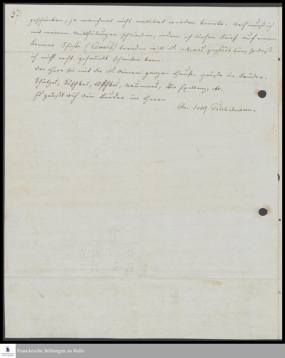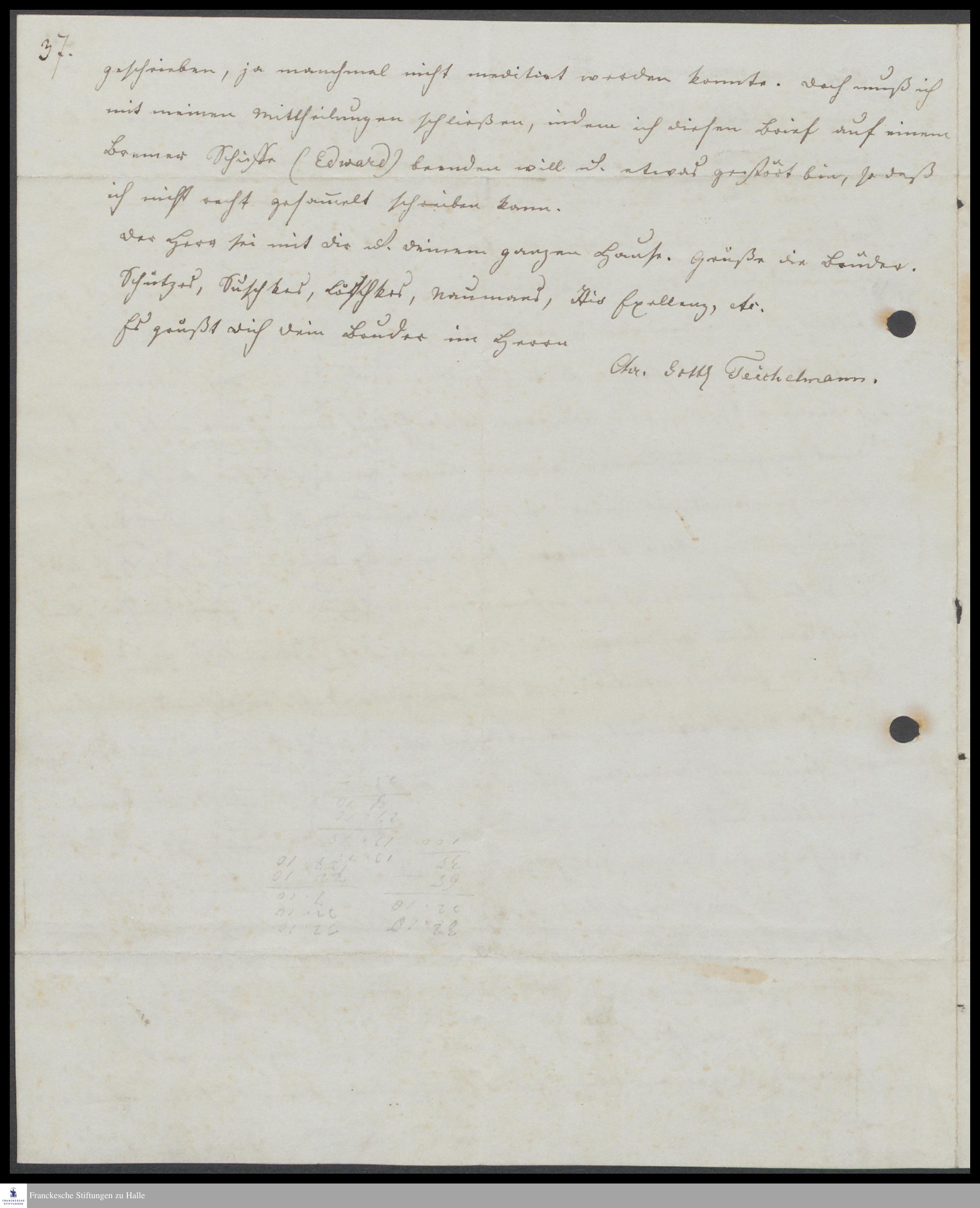 Brief von Christian Johann Georg Wermelskirch an Gottlob Teichelmann.