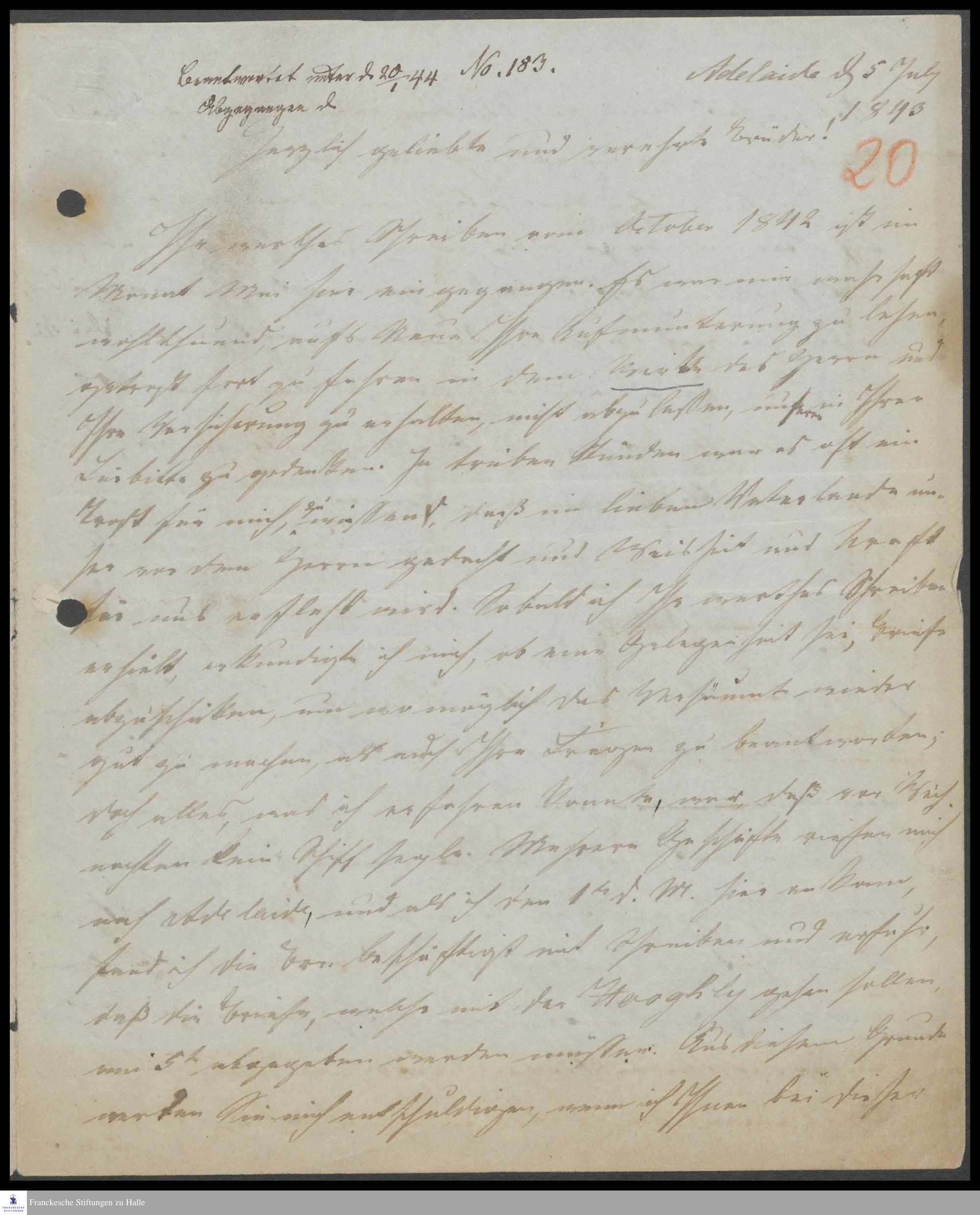 Brief von Heinrich August Eduard Meyer, Clamor Wilhelm Schürmann und Samuel Gottlieb Klose an das Komitee der ev.-luth. Missionsgesellschaft Dresden.