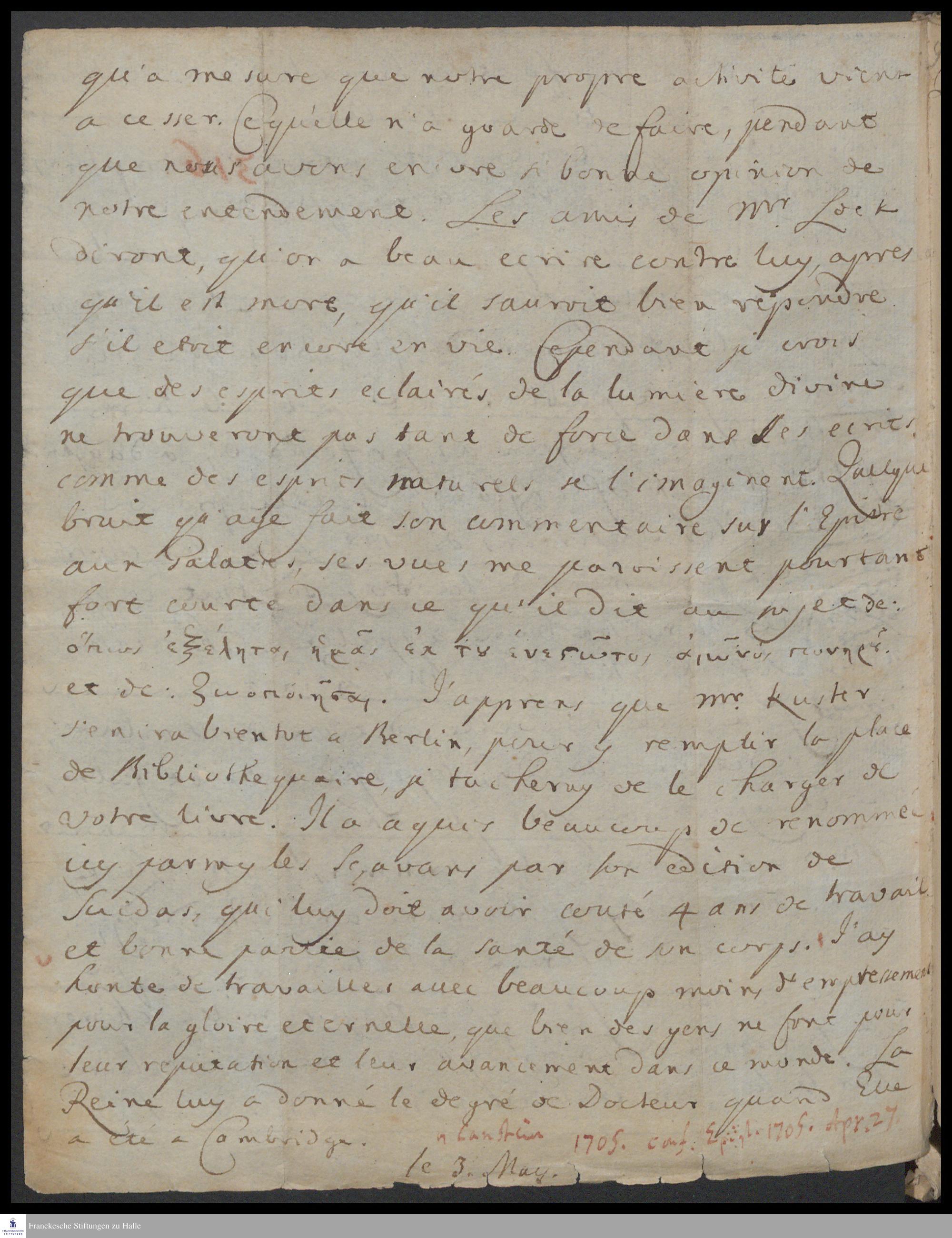 Postskriptum von Heinrich Wilhelm Ludolf an [Carl Hildebrand v. Canstein].
