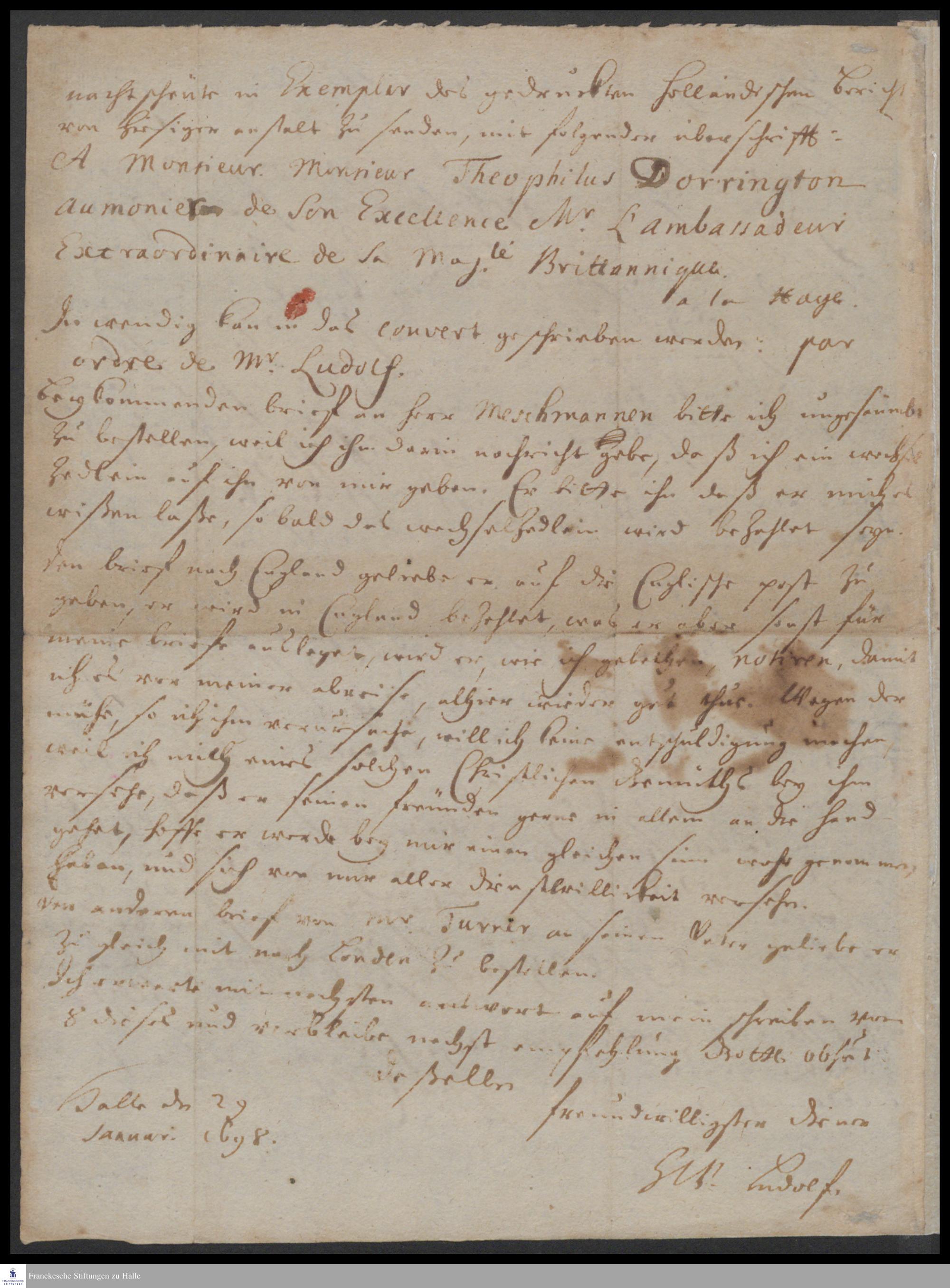 Brief von Heinrich Wilhelm Ludolf an Georg Heinrich Neubauer.