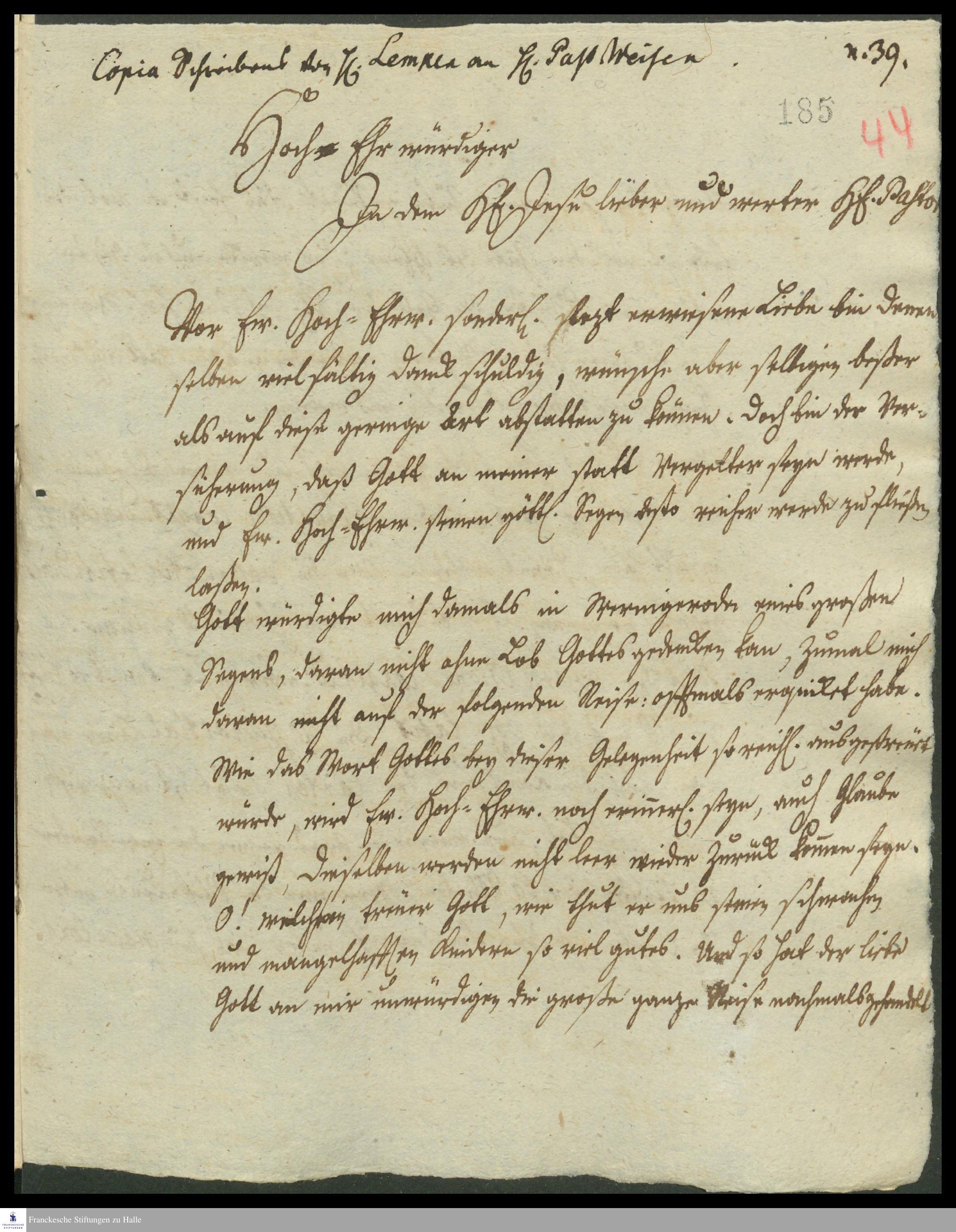 Auszug eines Briefes von Hermann Heinrich Lemke an Georg Friedrich Weise über die Messung der Längengrade auf See.