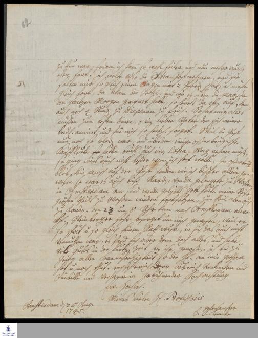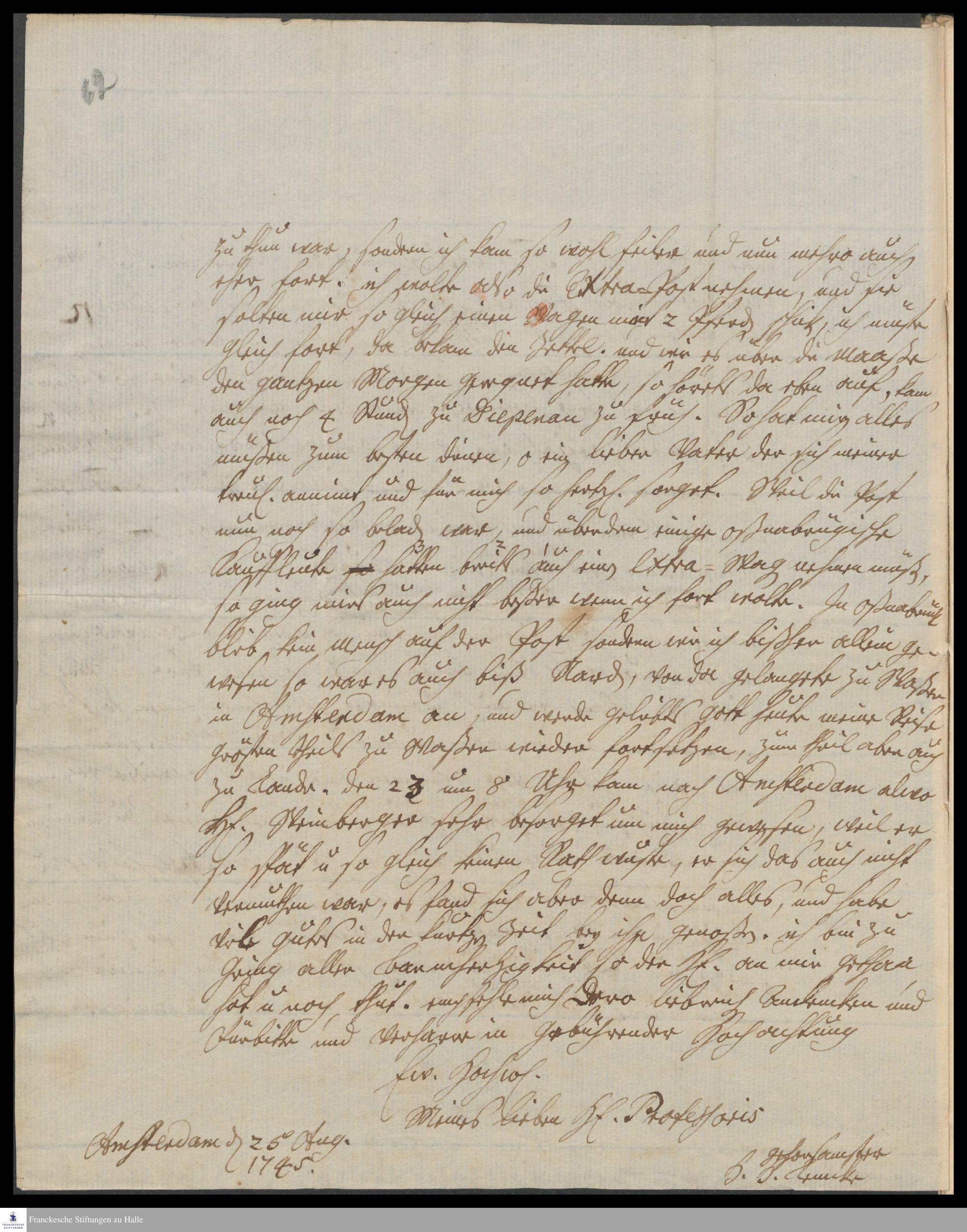 Brief von Hermann Heinrich Lemke an Gotthilf August Francke über seine Reise von Wernigerode bis Amsterdam.