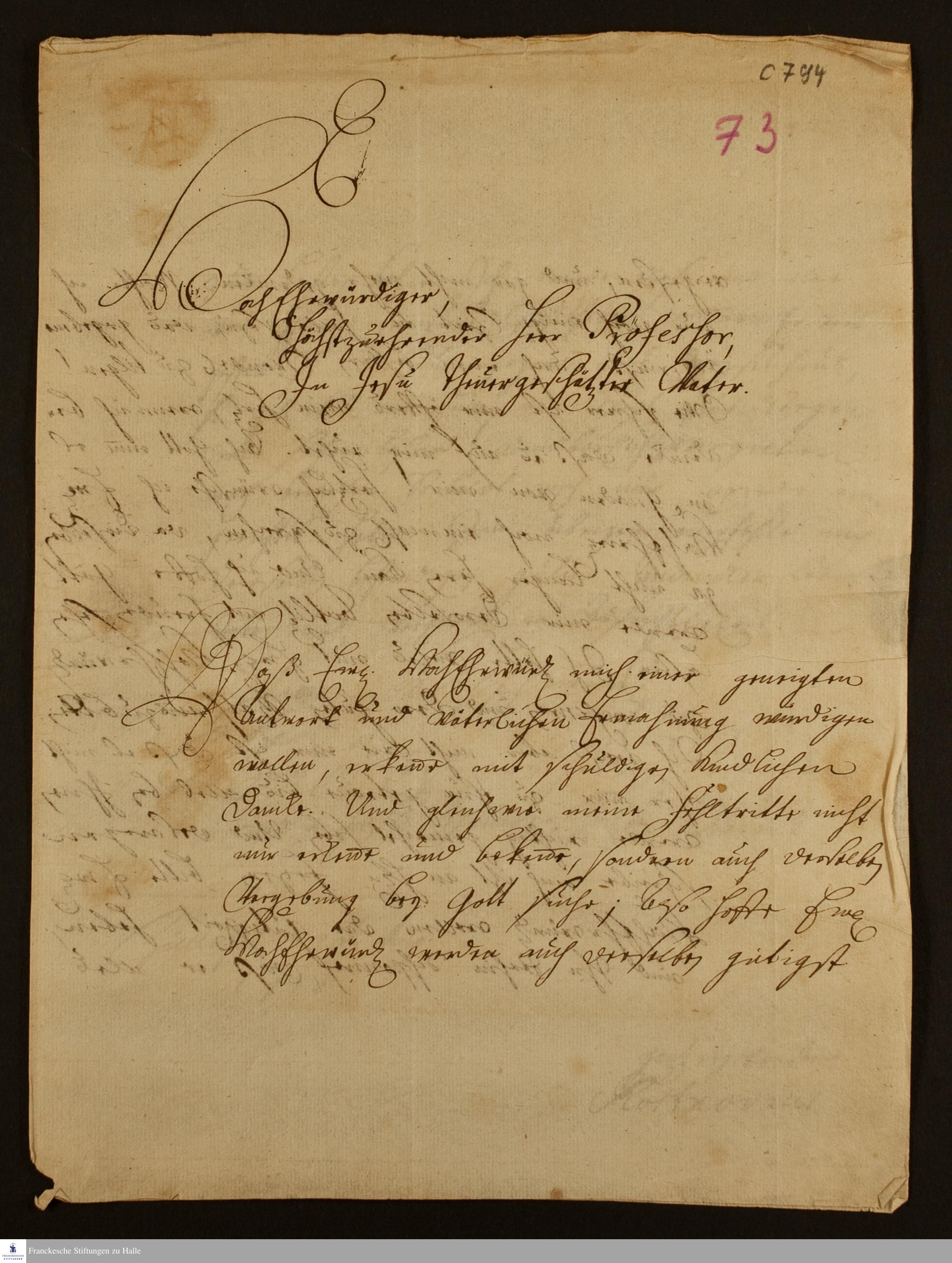 Brief von Samuel Rostkovius an August Hermann Francke.