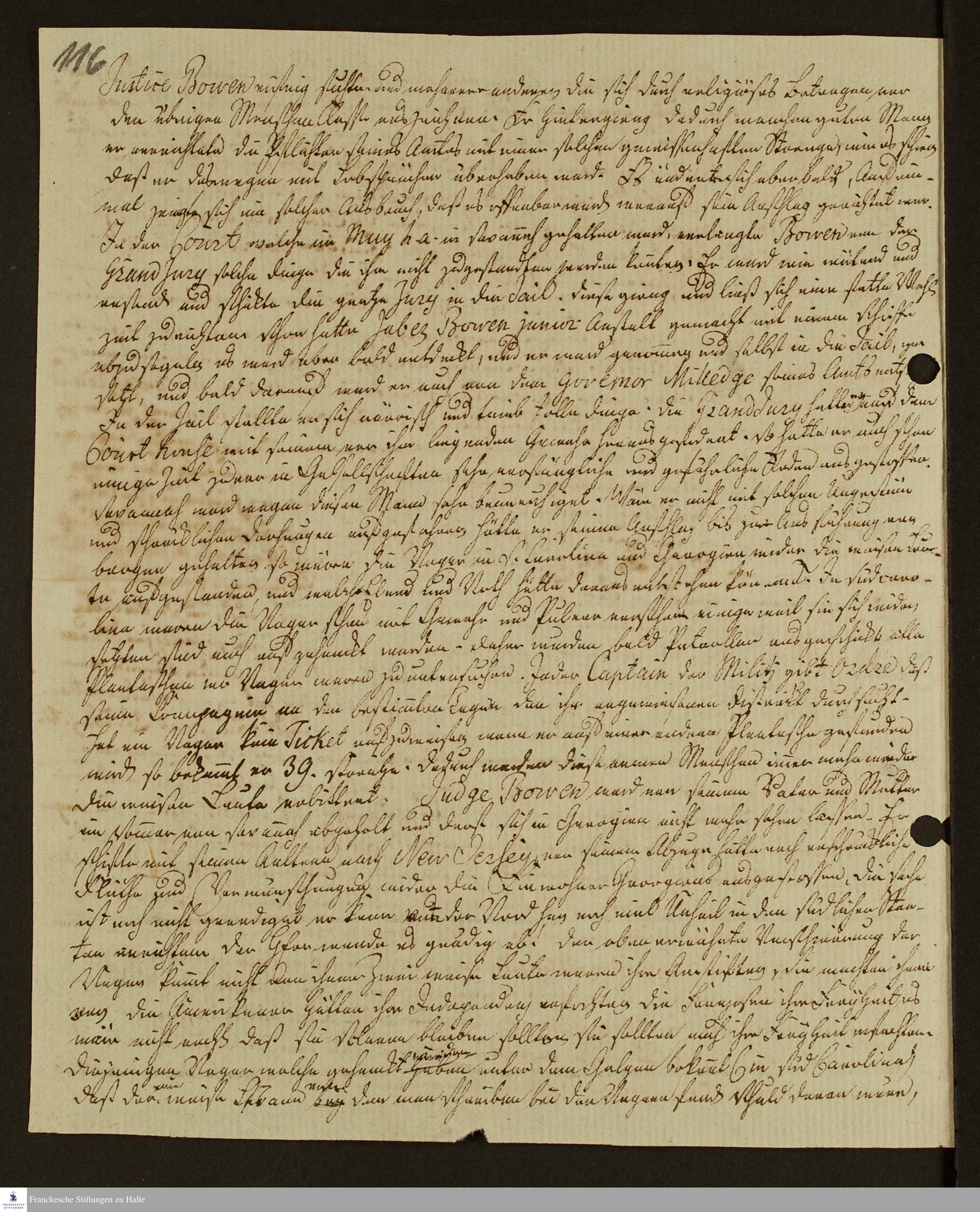 Bericht von Johann Ernst Bergmann an [Georg Christian Knapp ?] über Unwetterkatastrophen in Georgia sowie einen geplanten Sklavenaufstand.