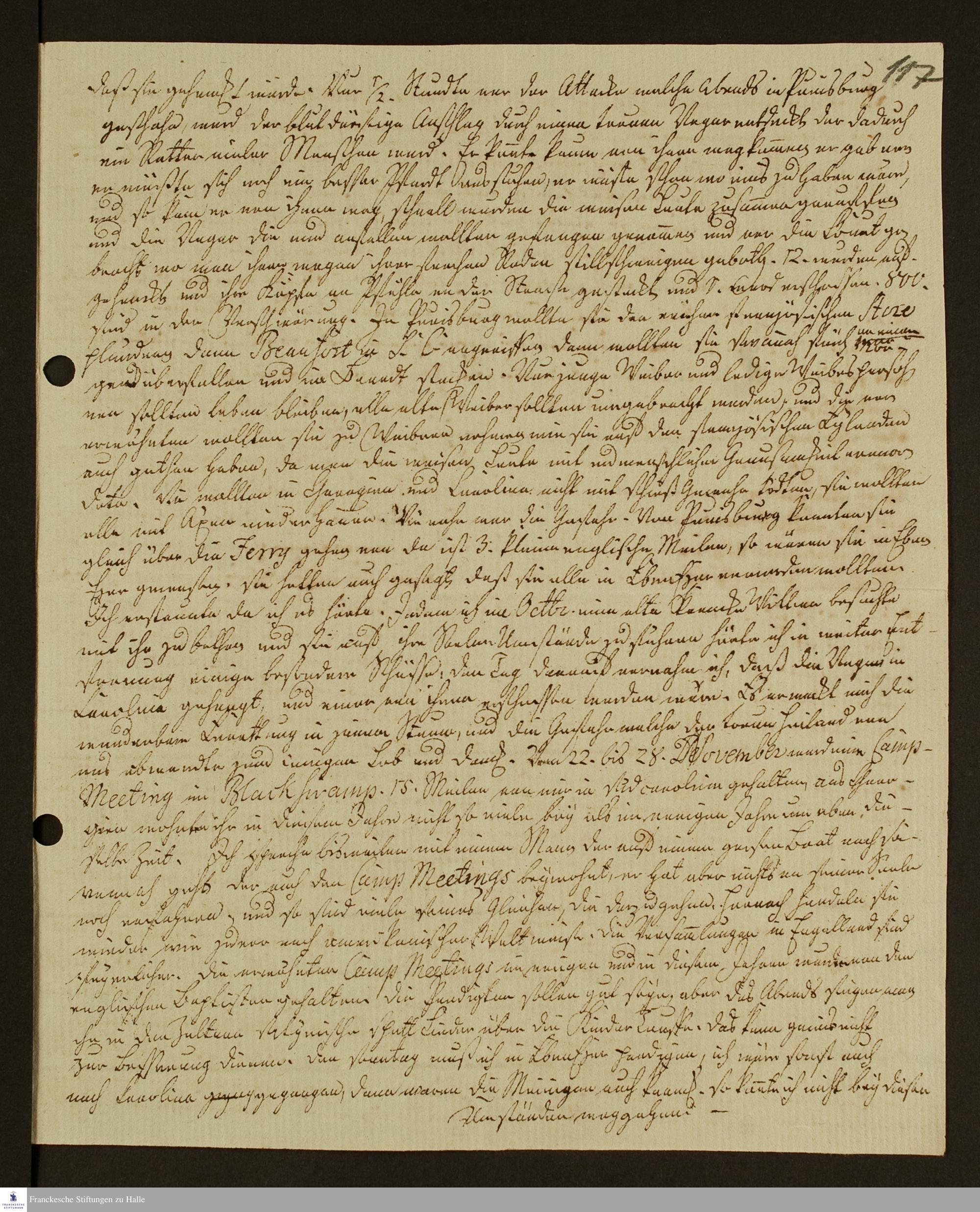 Bericht von Johann Ernst Bergmann an [Georg Christian Knapp ?] über Unwetterkatastrophen in Georgia sowie einen geplanten Sklavenaufstand.