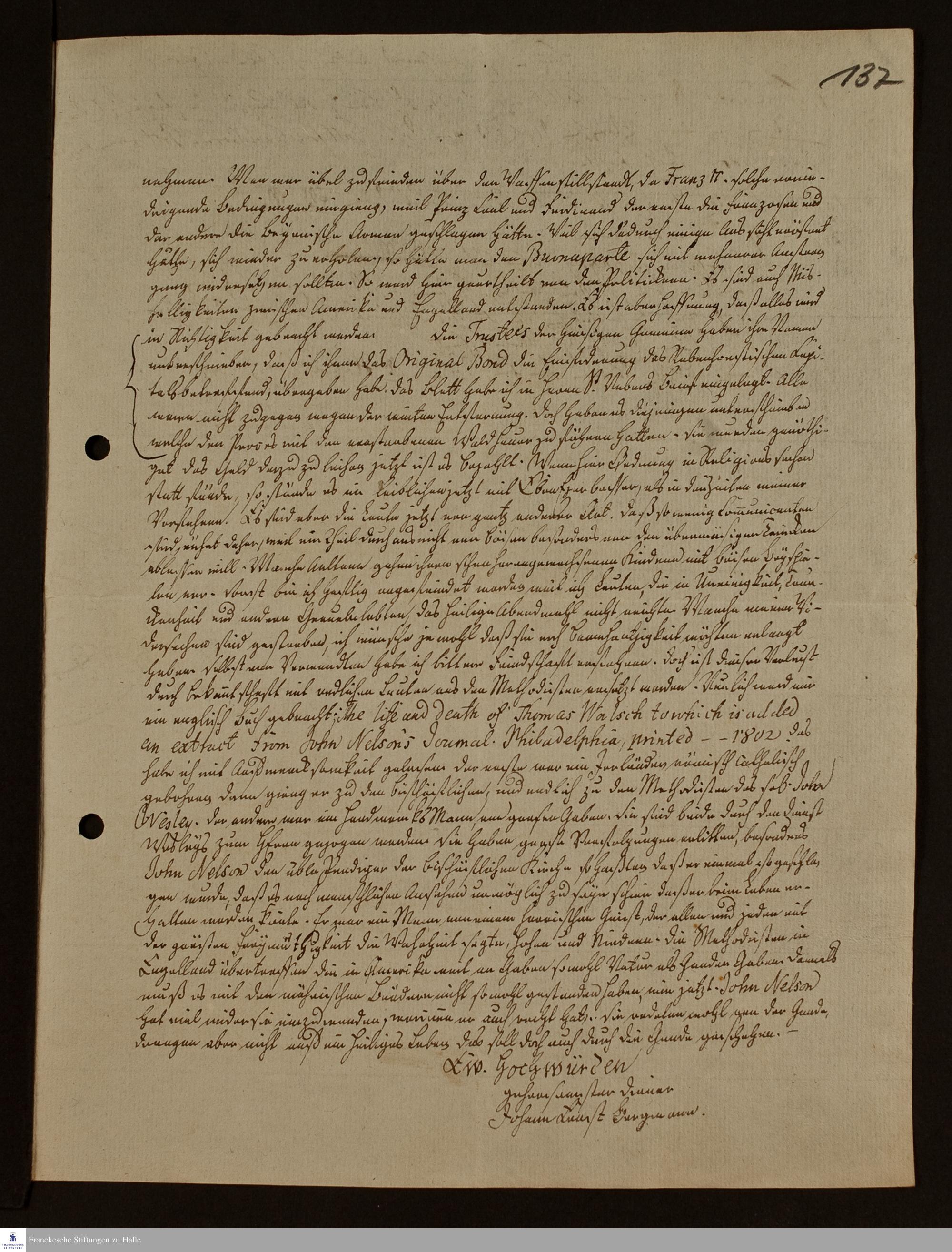 Brief von Johann Ernst Bergmann an Georg Christian Knapp über den moralischen Verfall Georgias sowie seine guten Beziehungen zu den Methodisten und Baptisten.