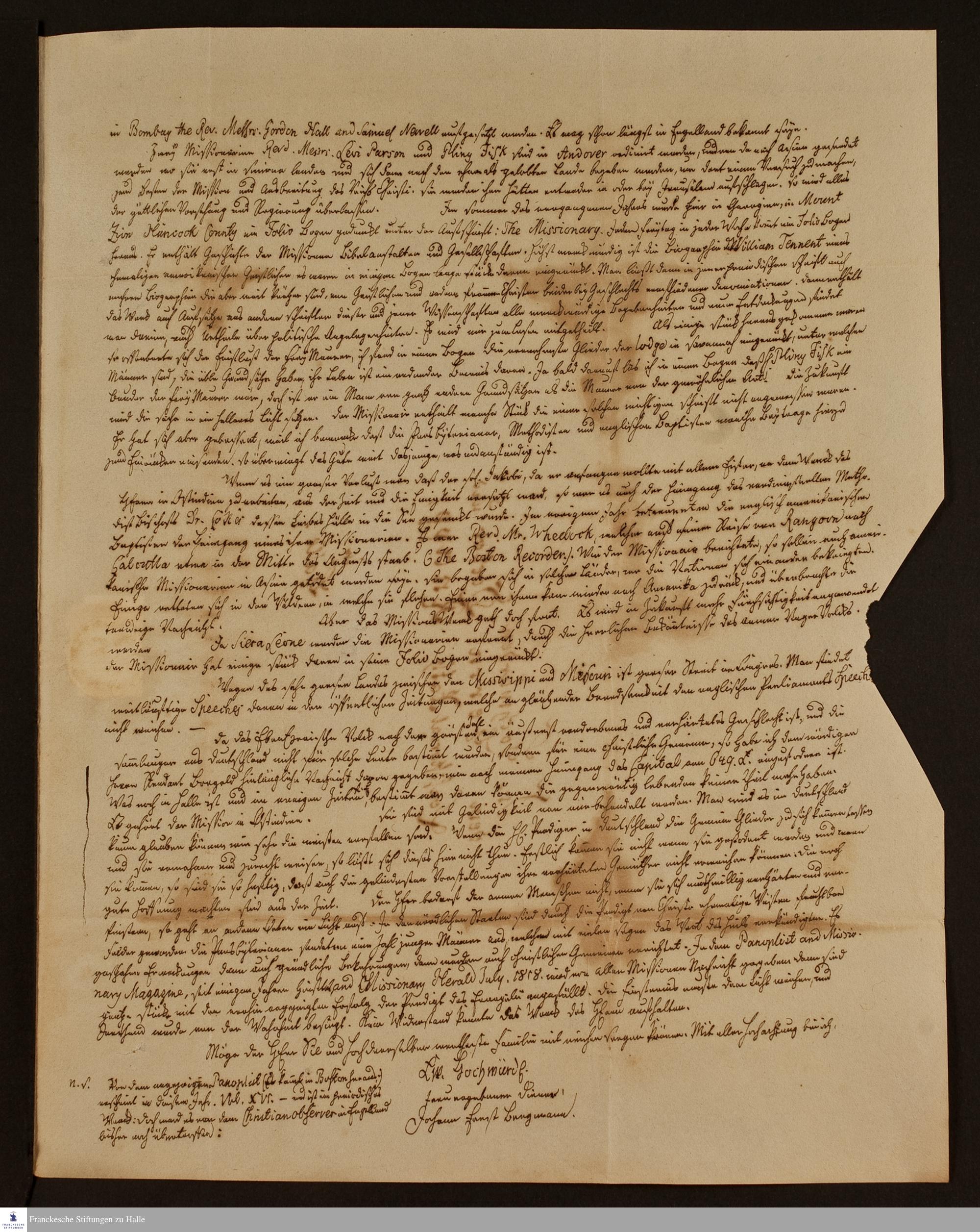 Brief von Johann Ernst Bergmann an Georg Christian Knapp.