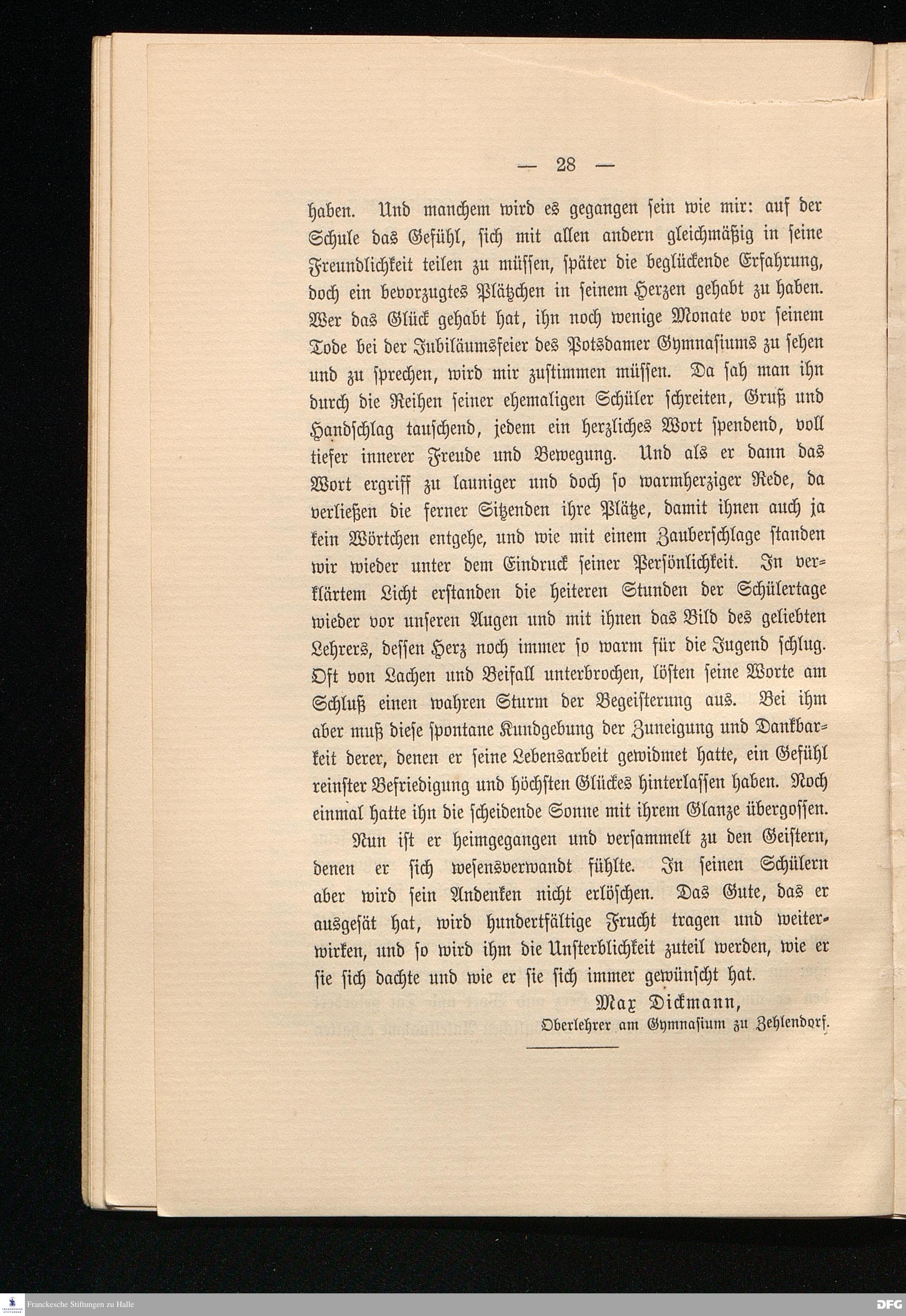 Max Niemeyer als Lehrer, nach der Erinnerung geschildert von einem seiner Schüle...