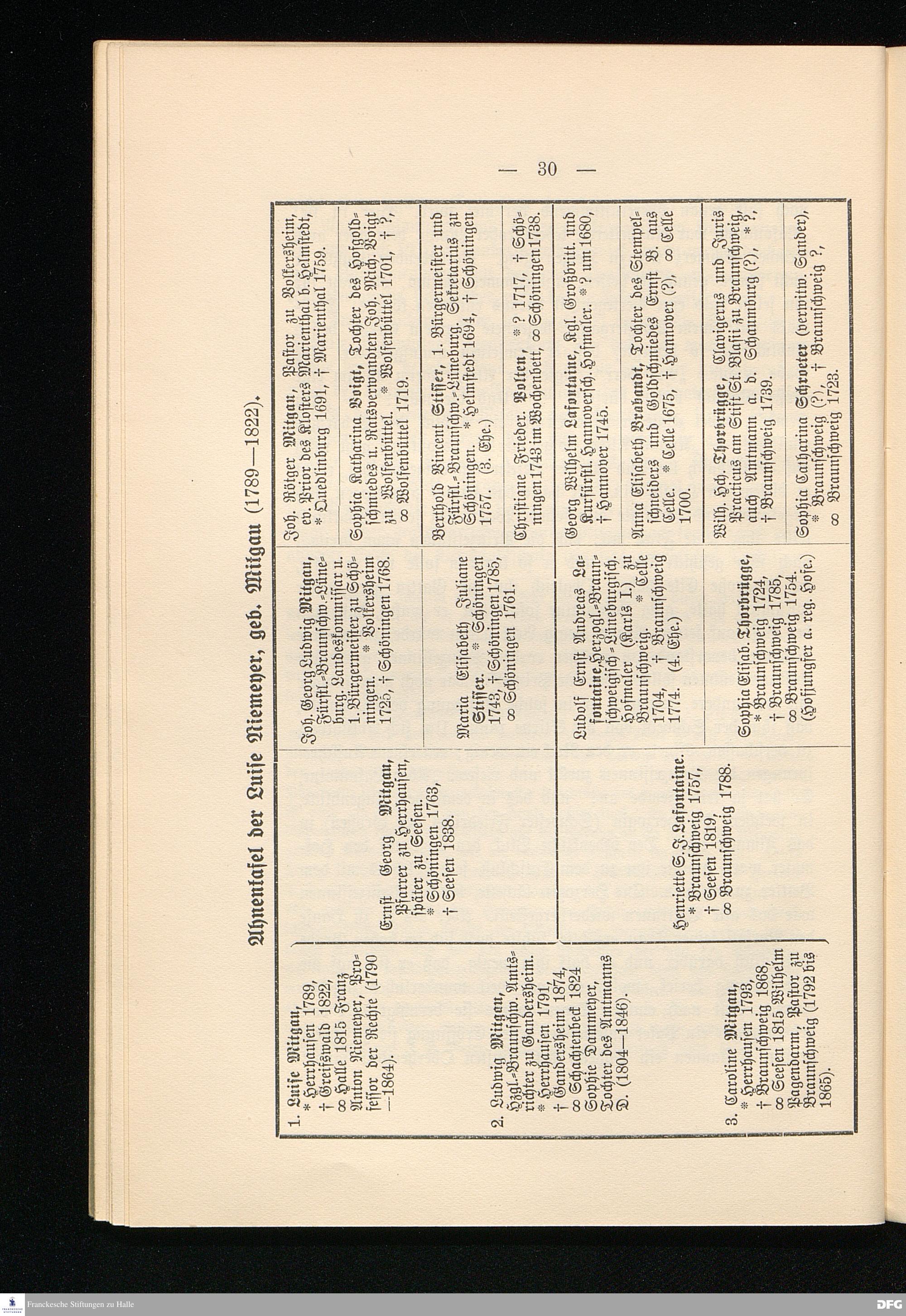 Ahnentafel der Luise Niemeyer, geb. Mitgau (1789-1822)