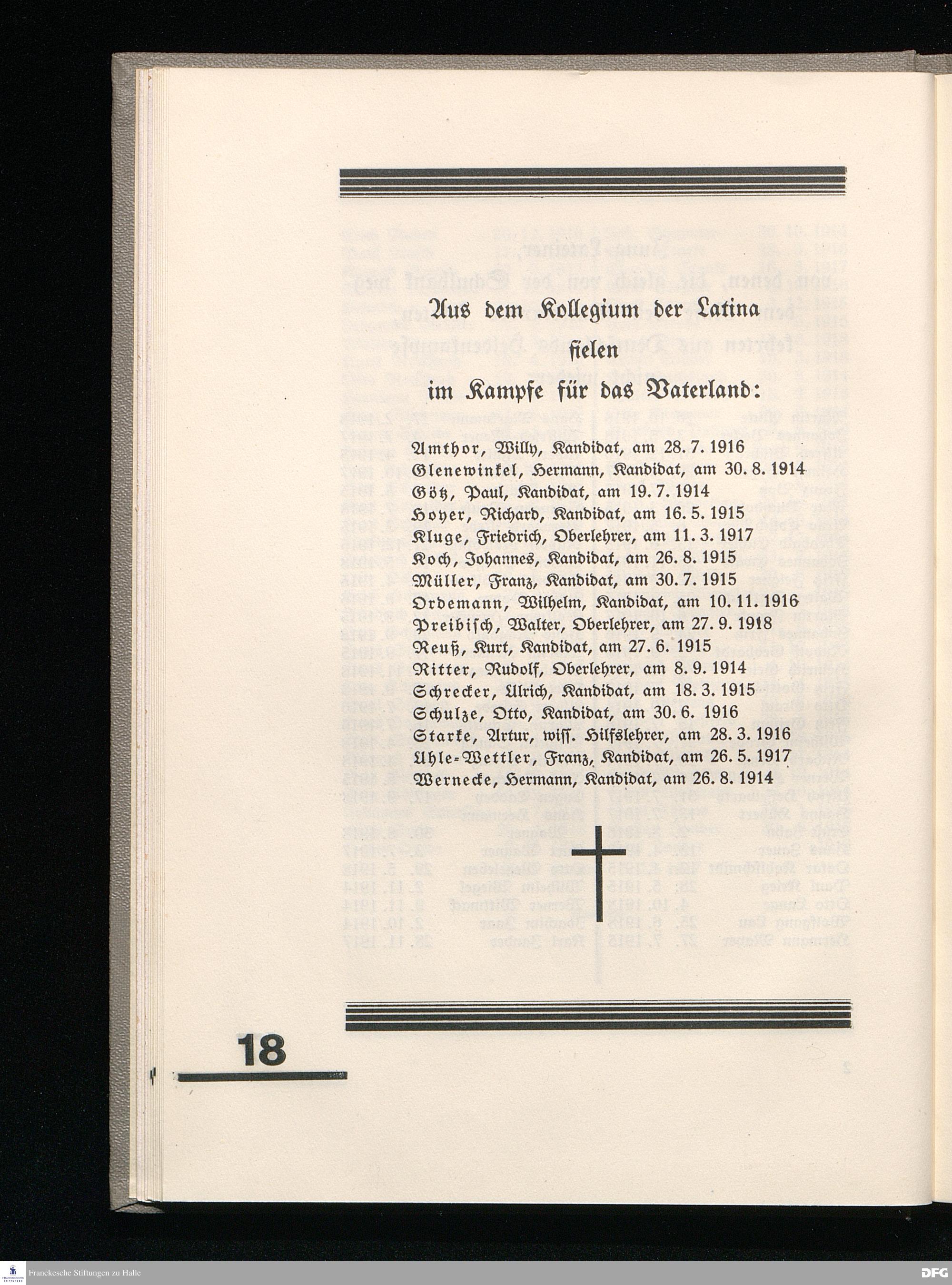 Aus dem Kollegium der Latina fielen im Kampfe für das Vaterland