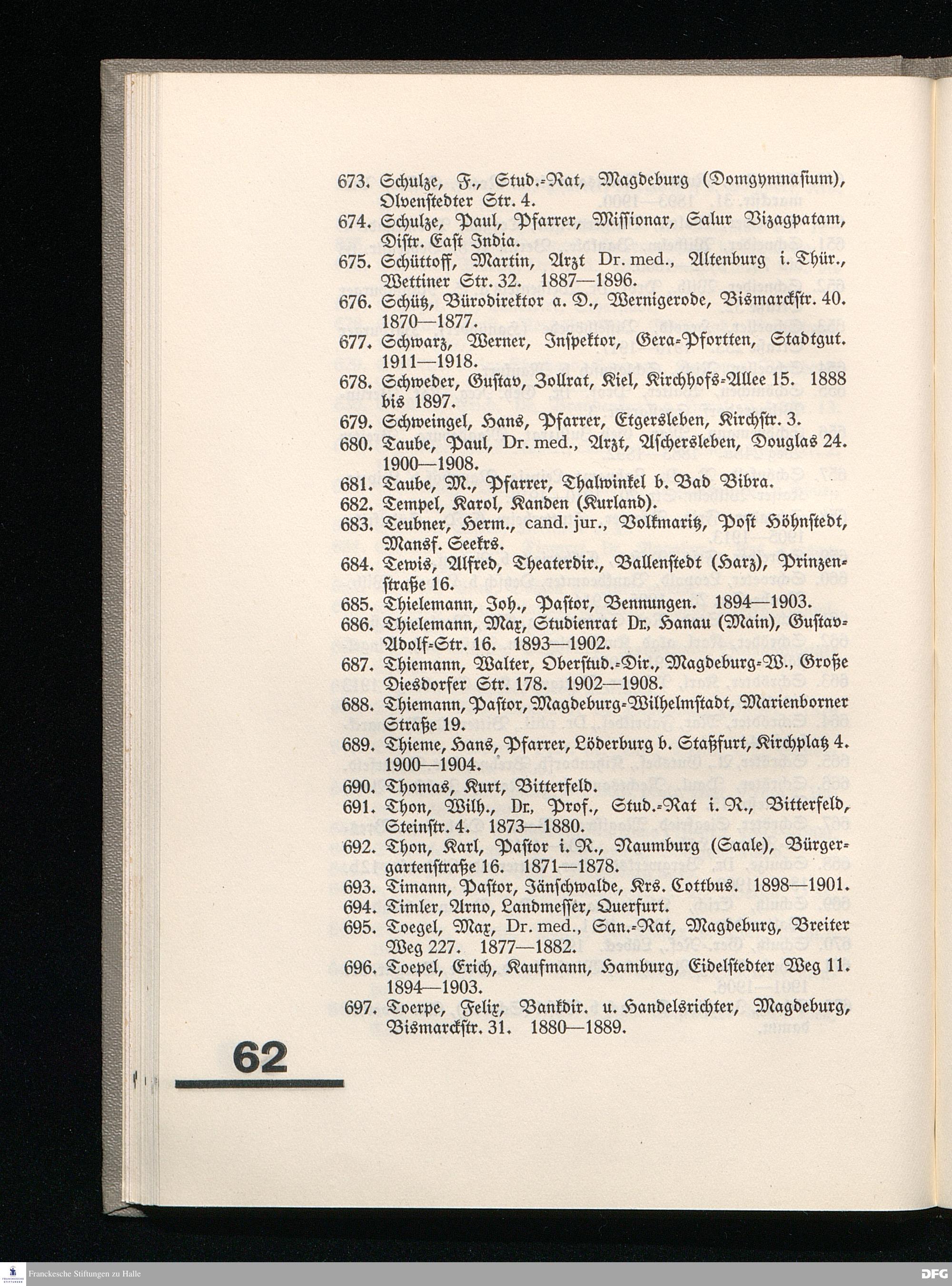 Anschriften-Verzeichnis der alten Lateiner mit Ausnahme von Halle und näherer Um...