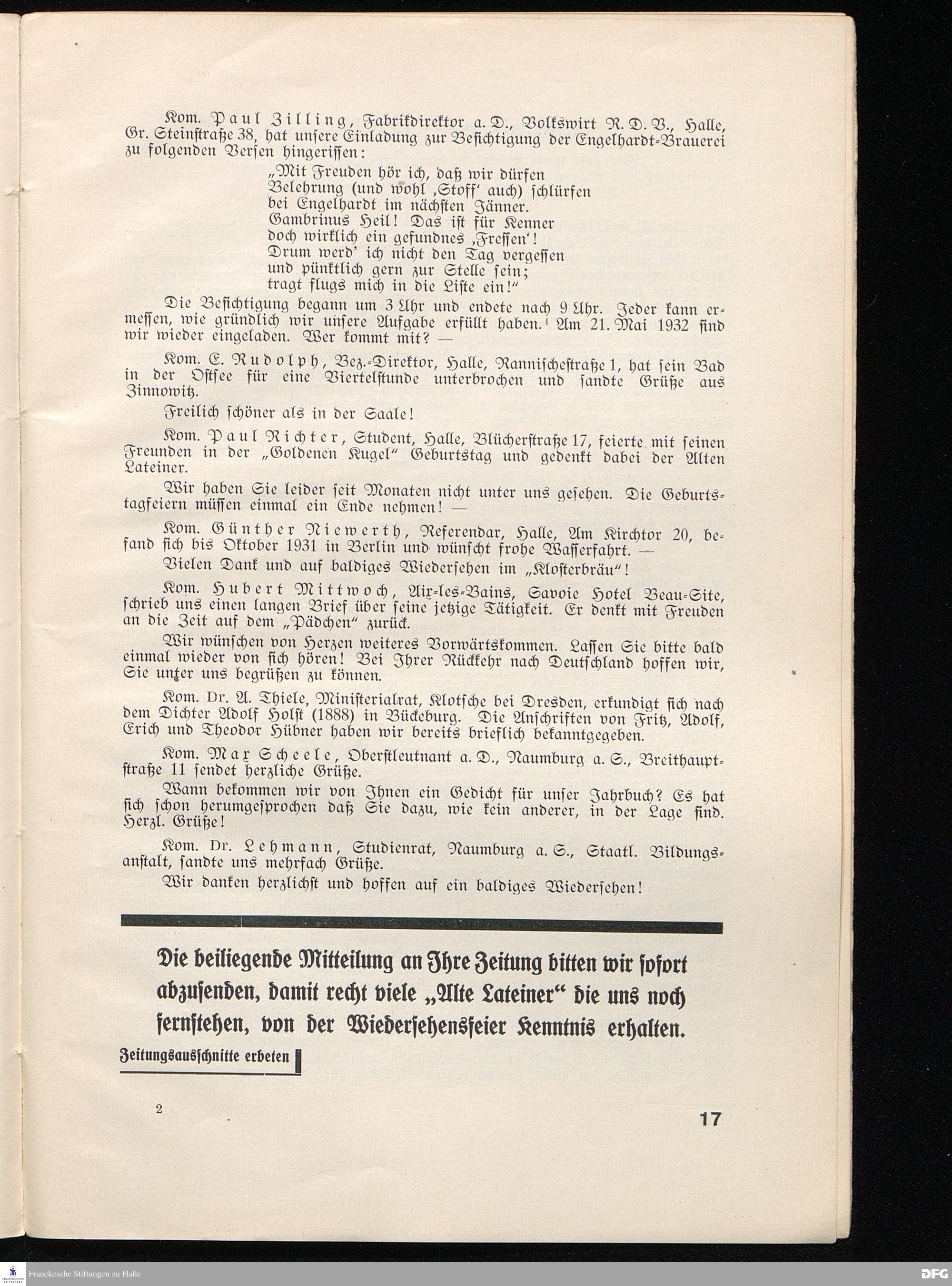 SCHOLA LATINA/ HALLE (SAALE) Jahrbuch der Alten Lateiner Ausgabe 1932
