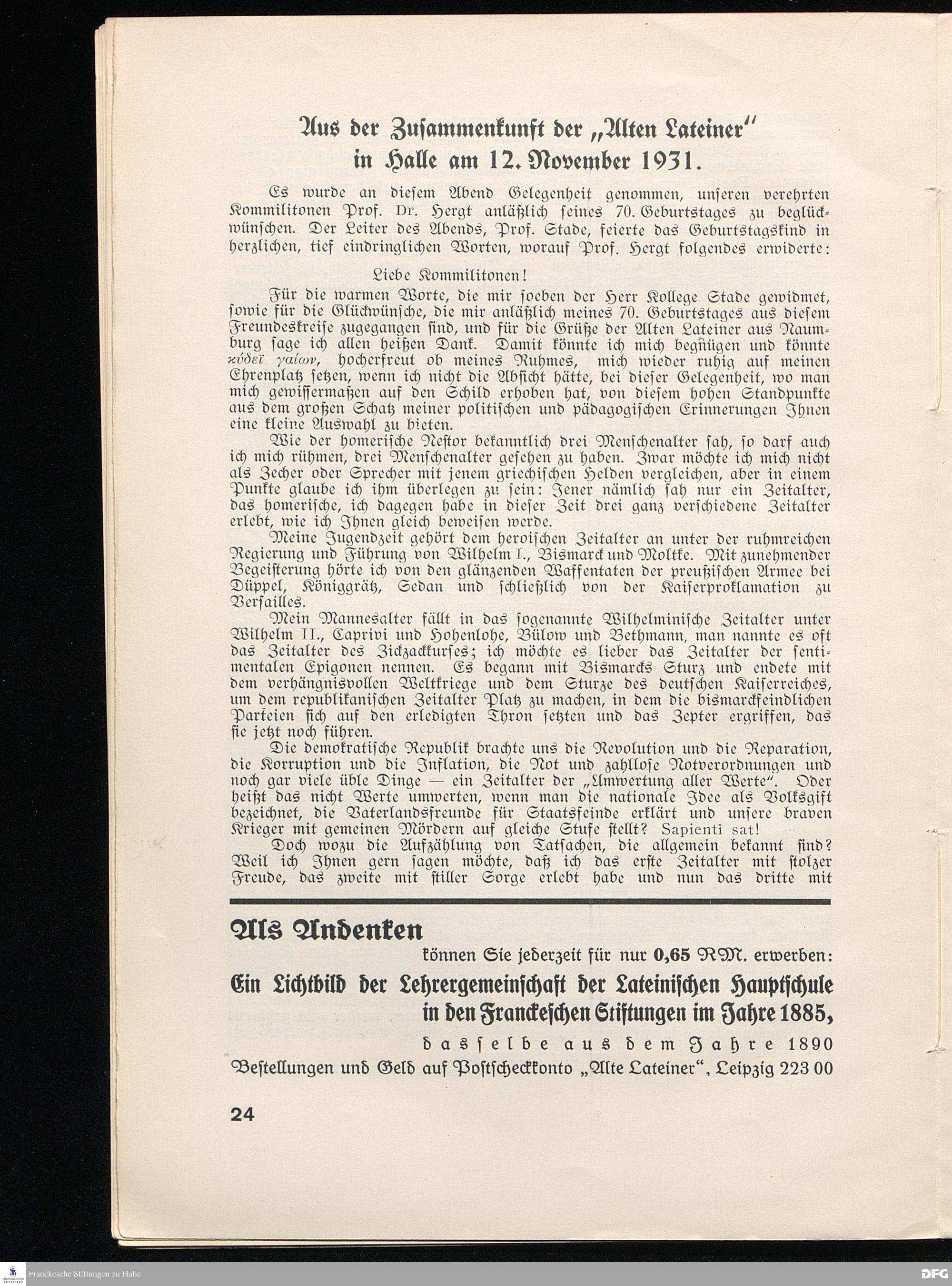 Aus der Zusammenkunft der "Alten Lateiner" in Halle am 12. November 1931.
