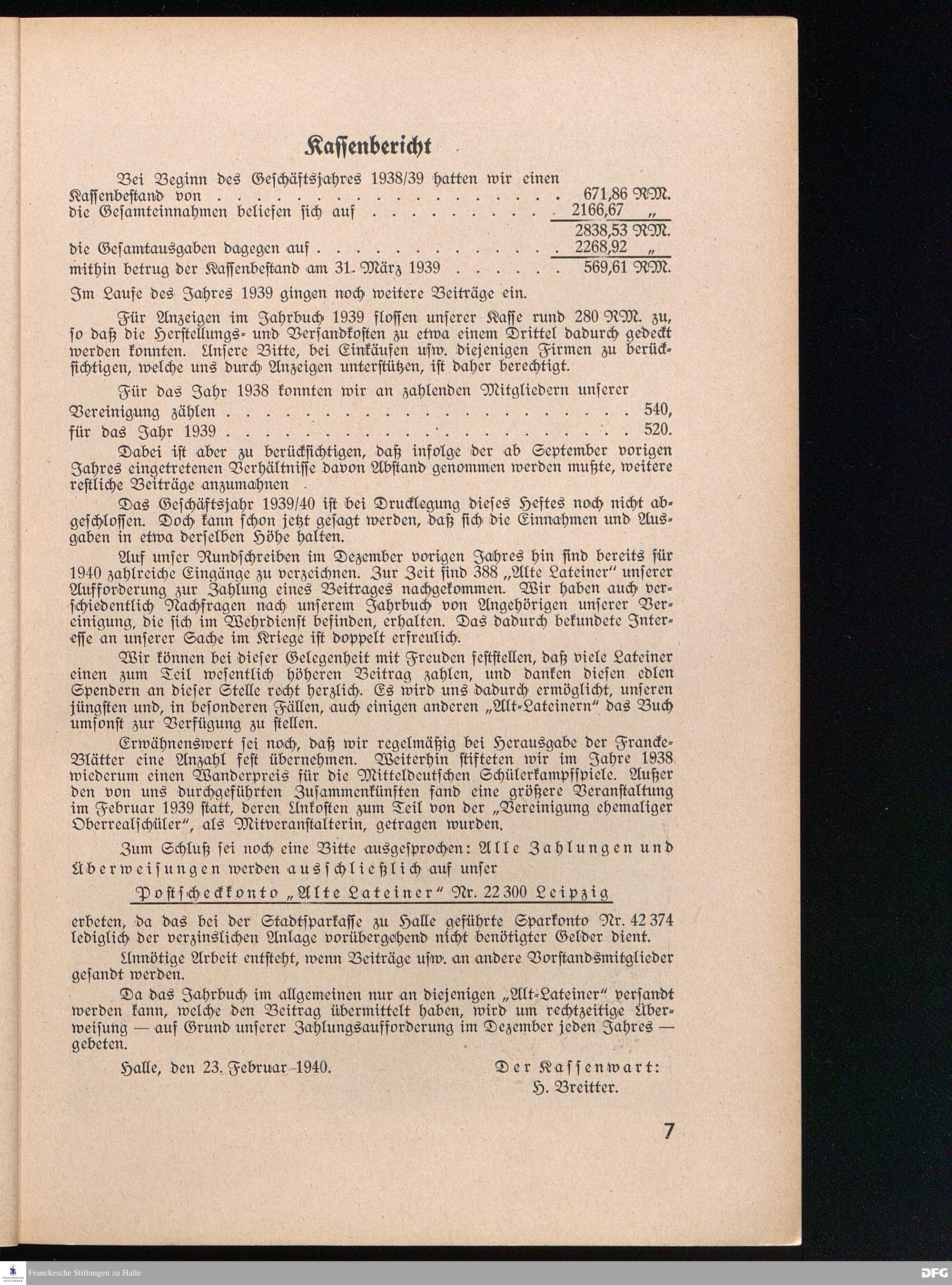Kassenbericht