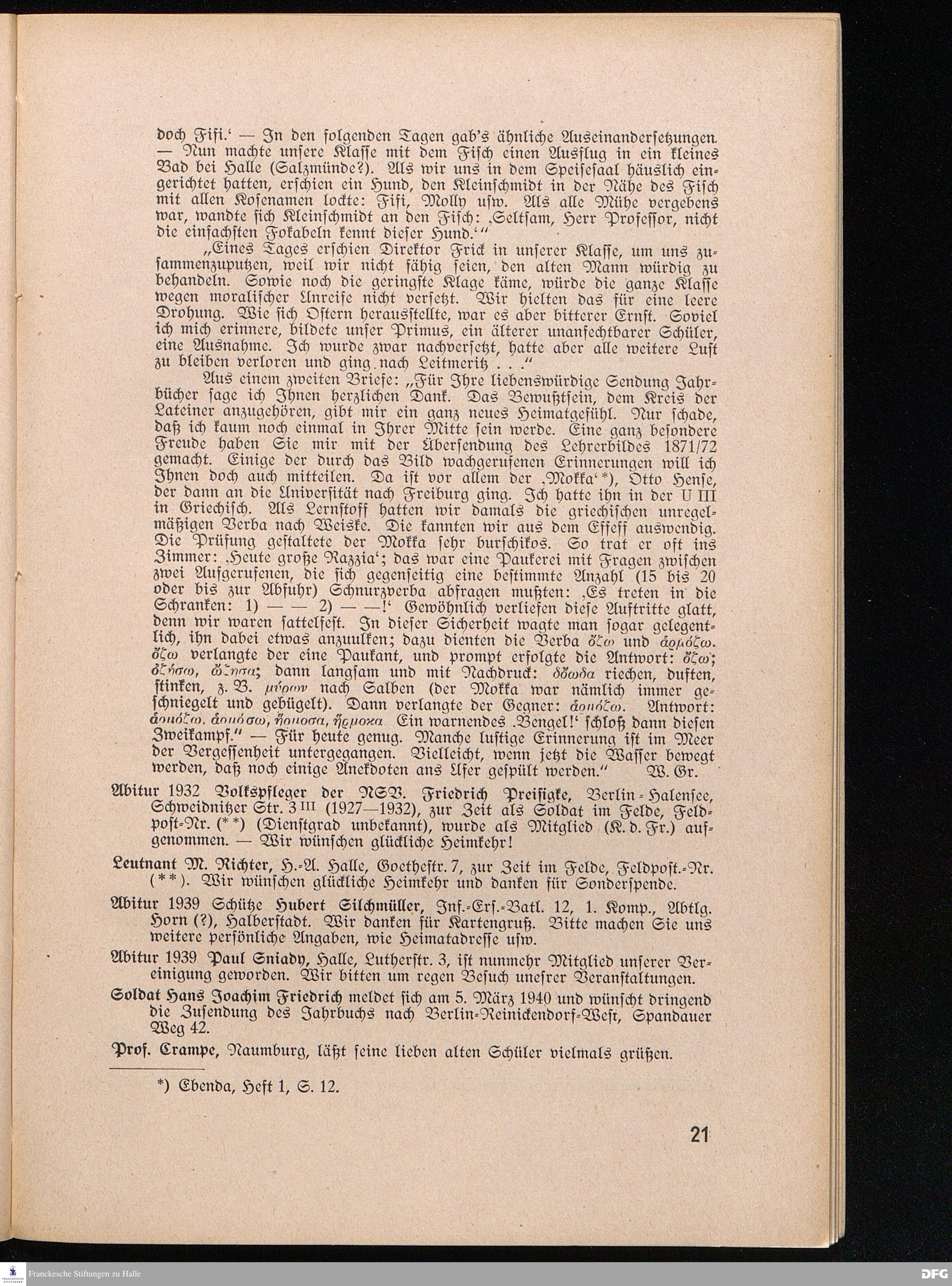 SCHOLA LATINA Halle-Saale 1940