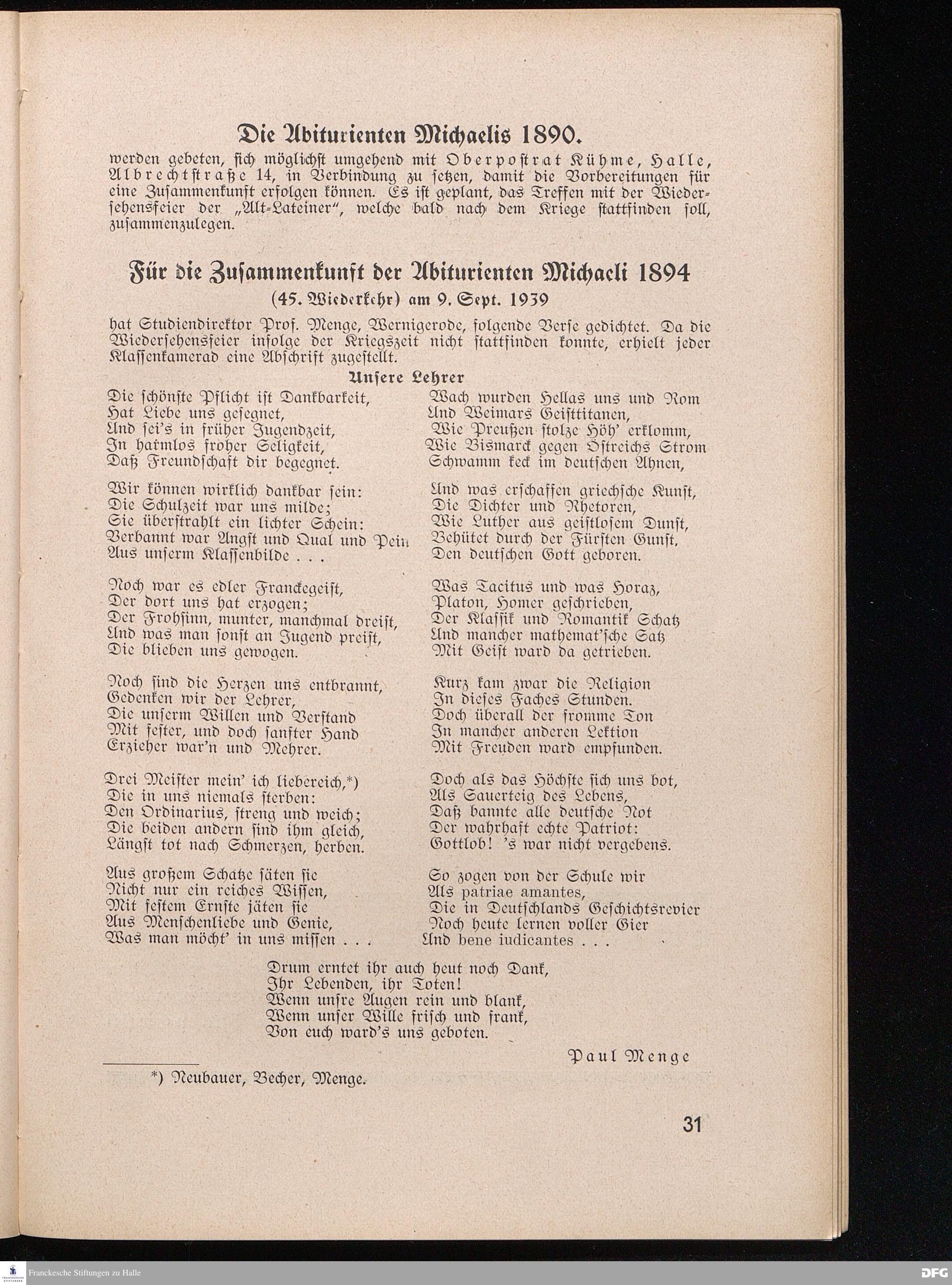 Für die Zusammenkunft der Abiturienten Michaeli 1894