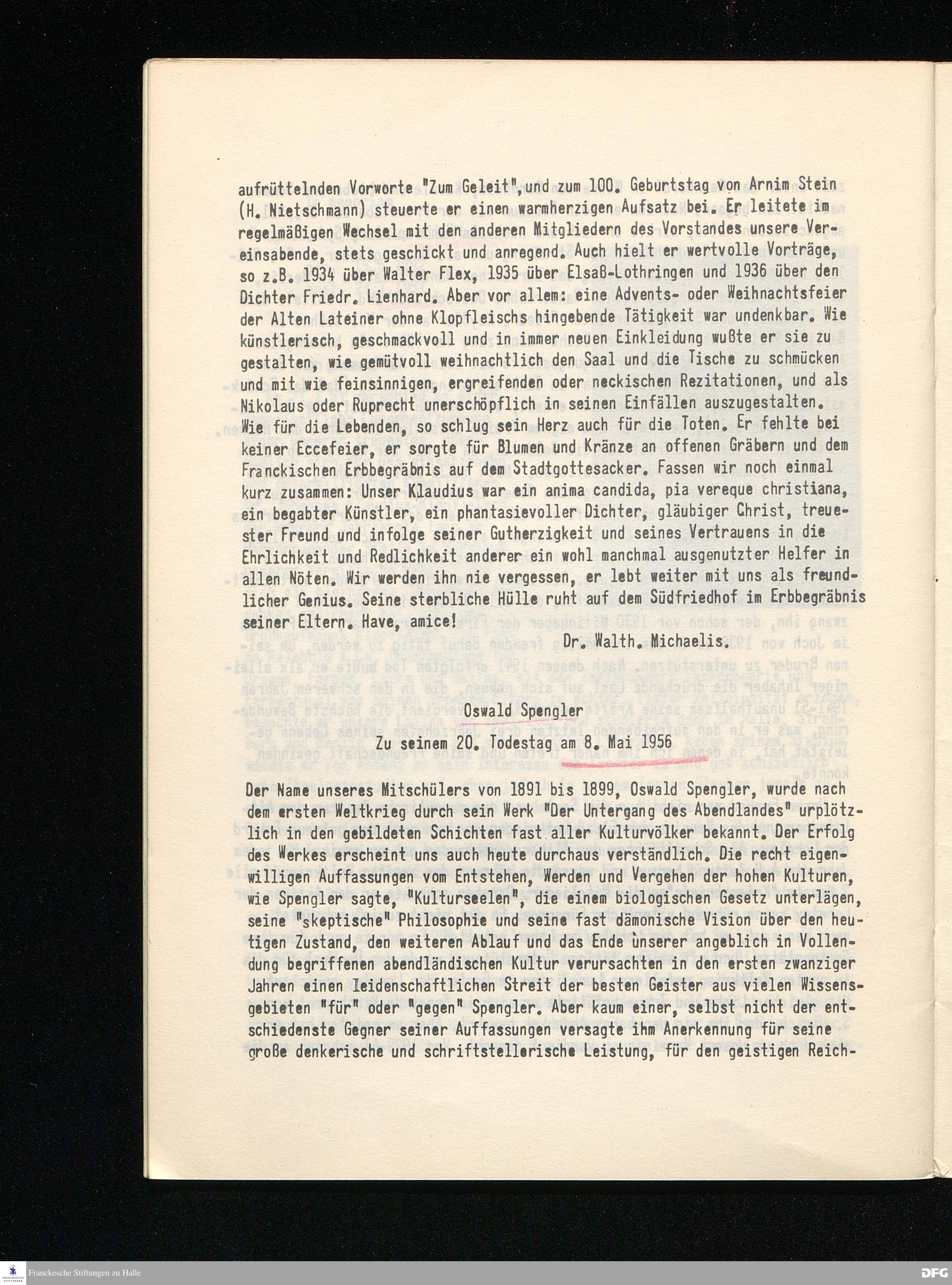 Oswald Spengler Zu seinem 20. Todestag am 8. Mai 1956
