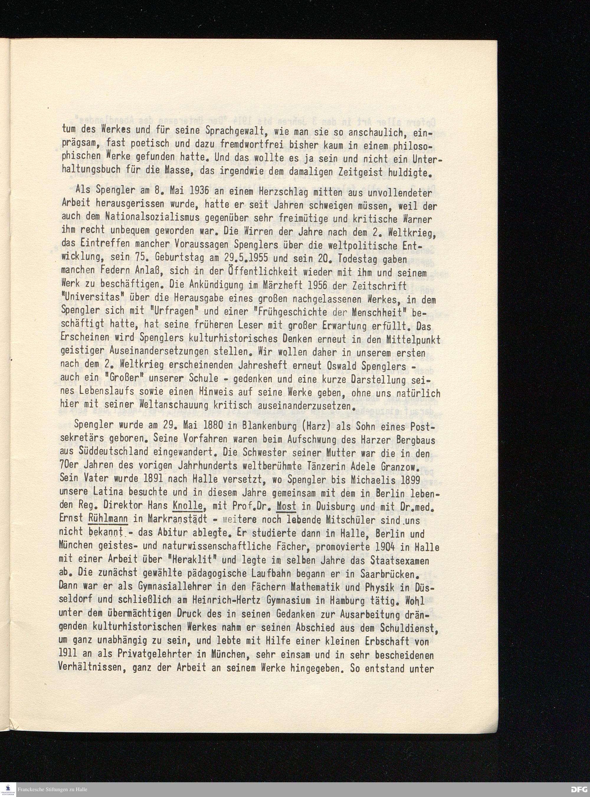 Oswald Spengler Zu seinem 20. Todestag am 8. Mai 1956