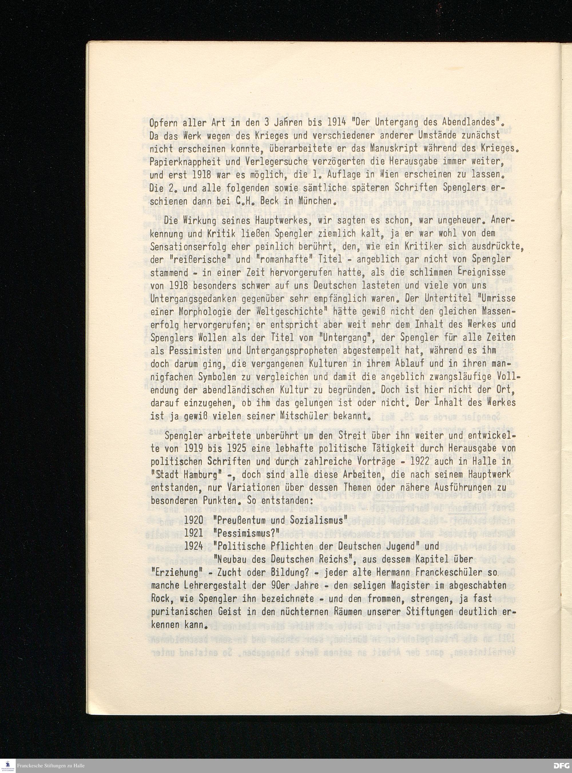 Oswald Spengler Zu seinem 20. Todestag am 8. Mai 1956