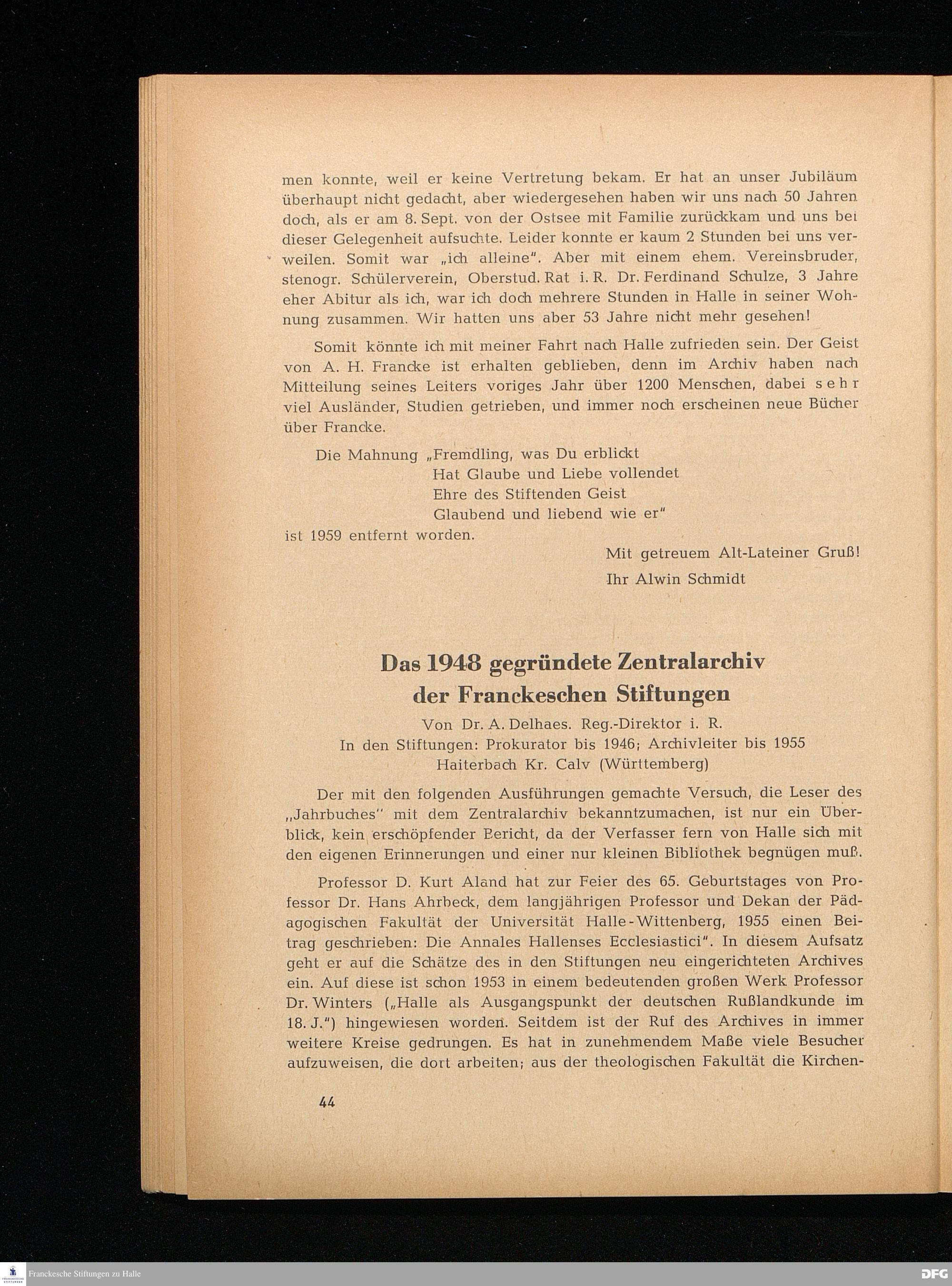 Das 1948 gegründete Zentralarchiv der Franckeschen Stiftungen