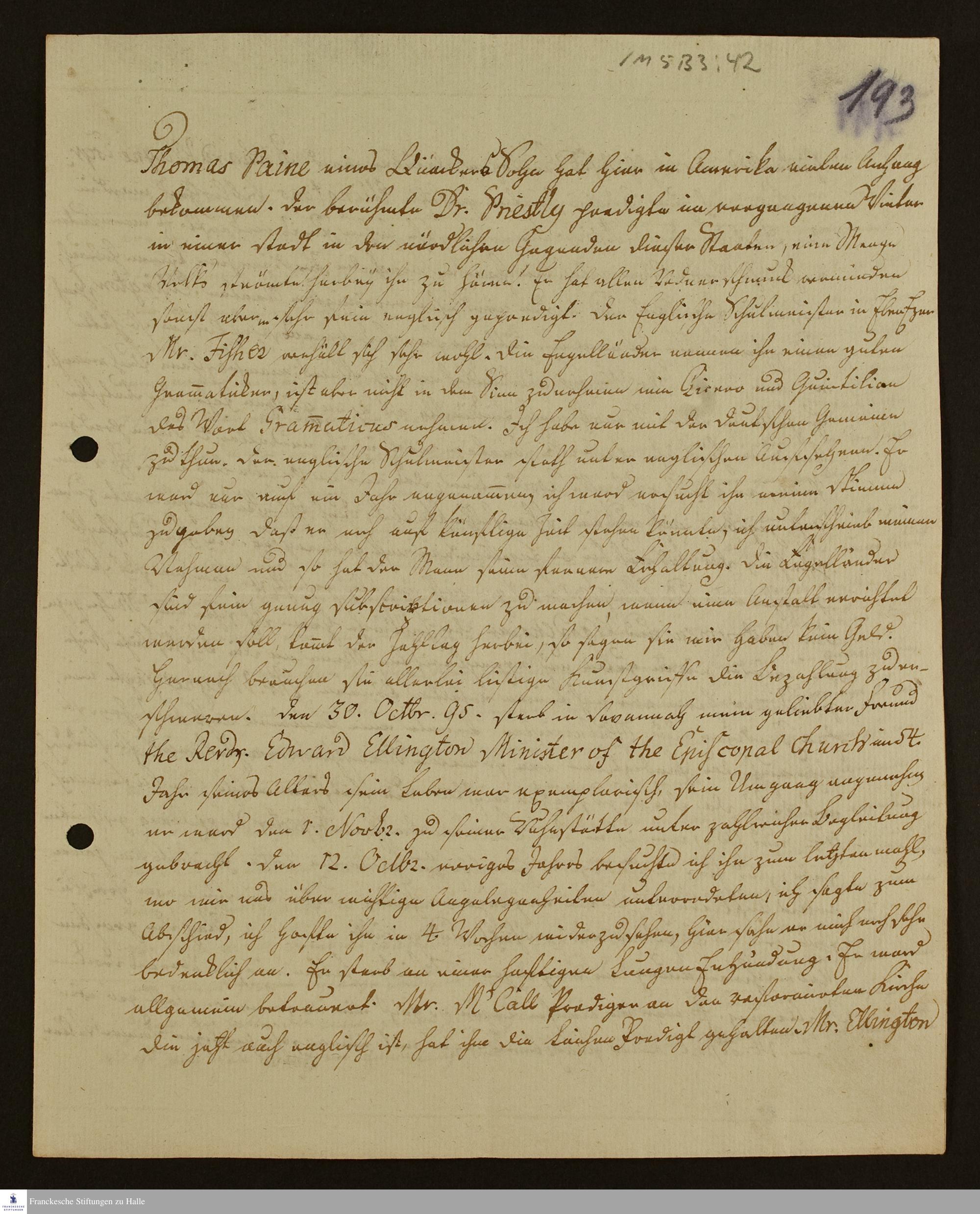 Brief von Johann Ernst Bergmann an Johann Ludwig Schulze - u.a. über seine Begegnung mit einem katholischen Priester.