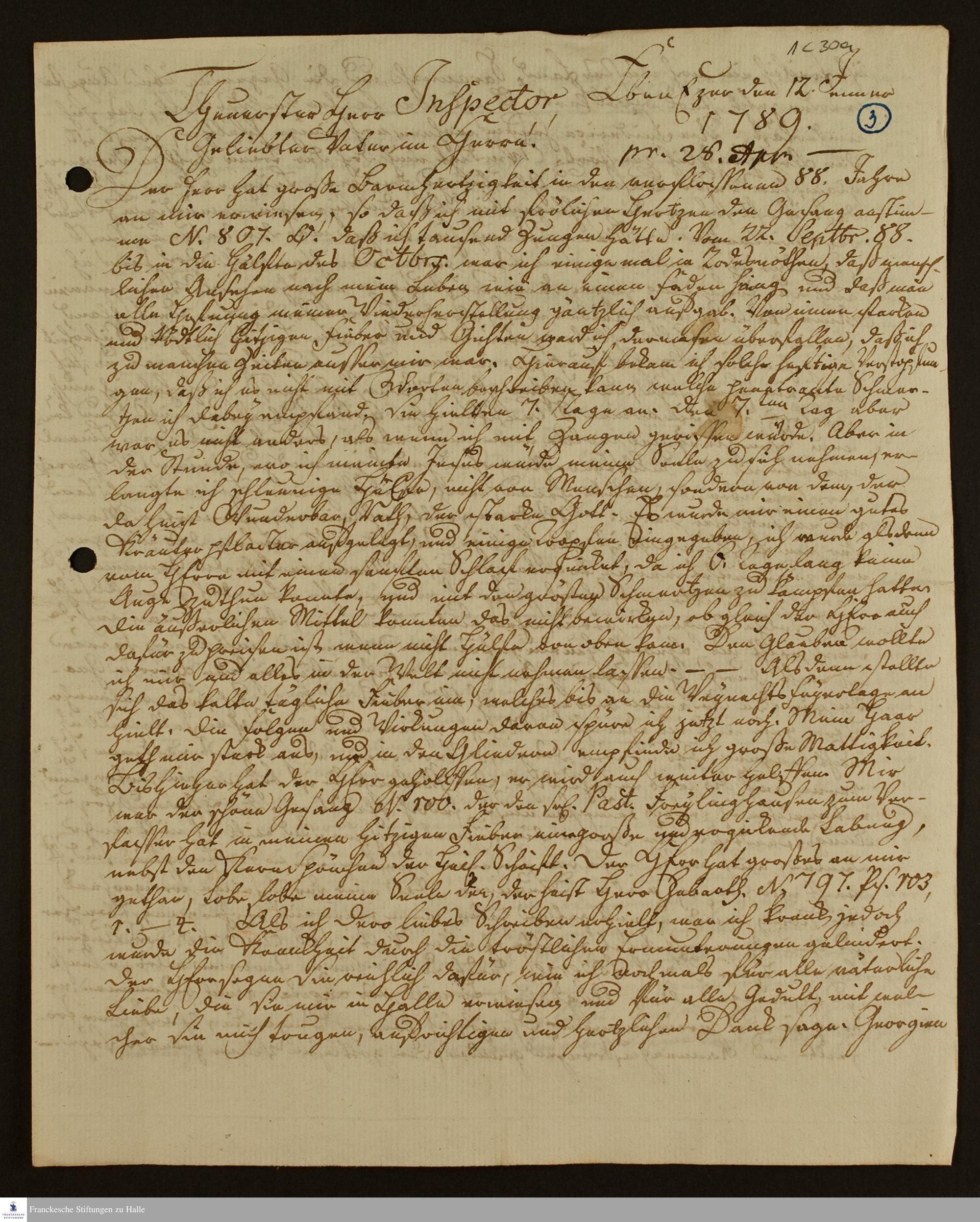 Brief von Johann Ernst Bergmann an Sebastian Andreas Fabricius.