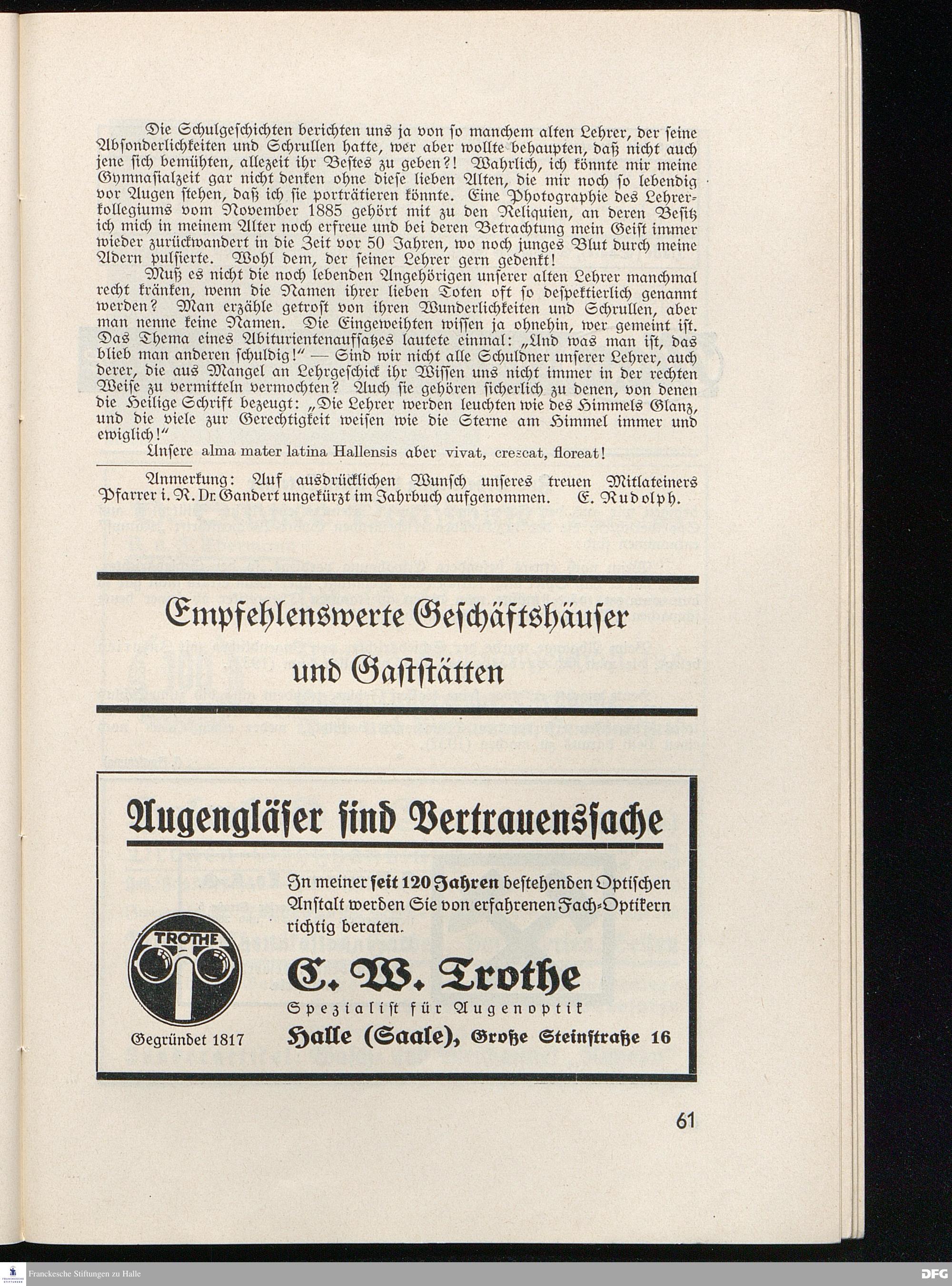 SCHOLA LATINA HALLE-SAALE 1938