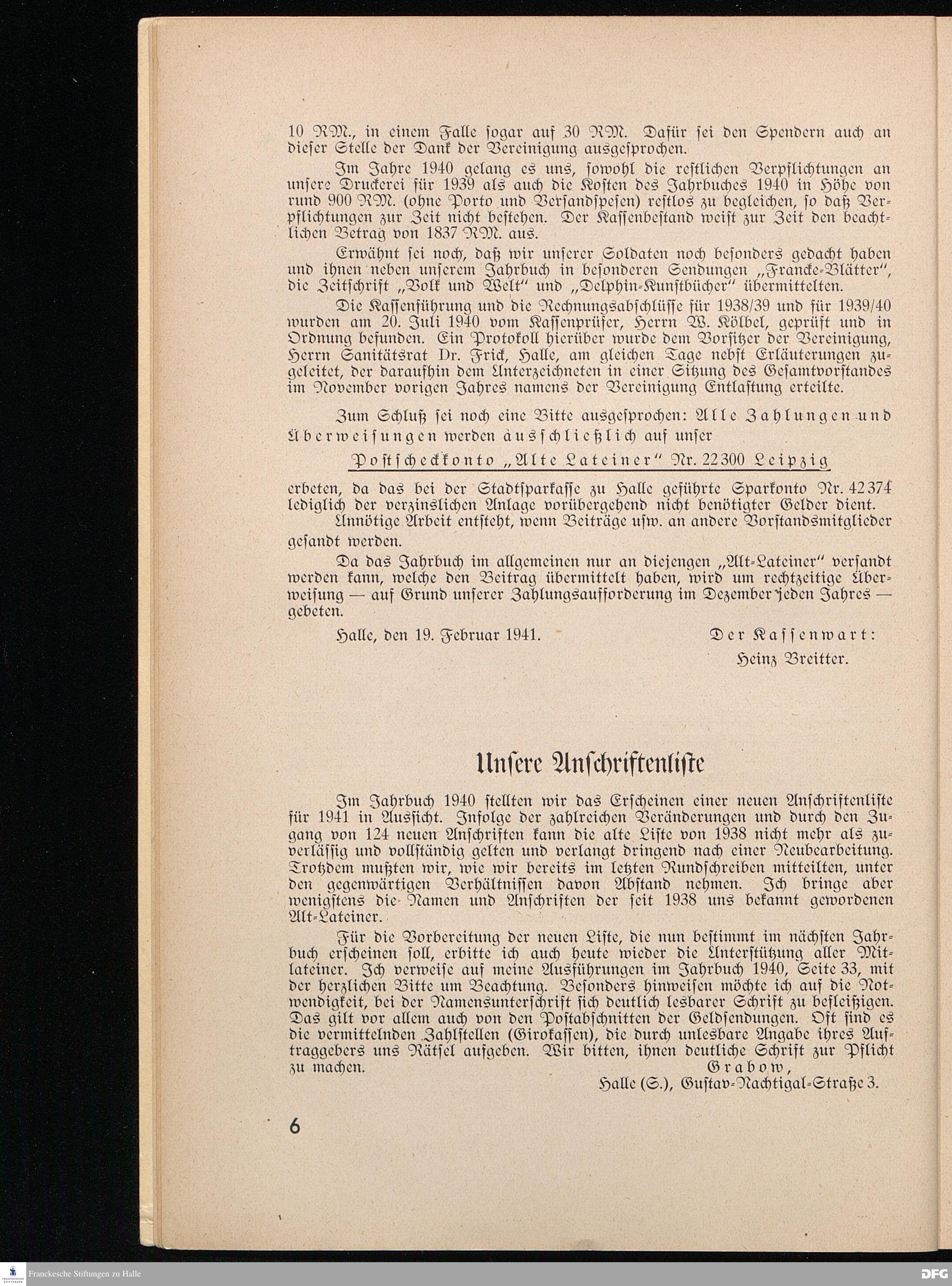 Unsre Anschriftenliste