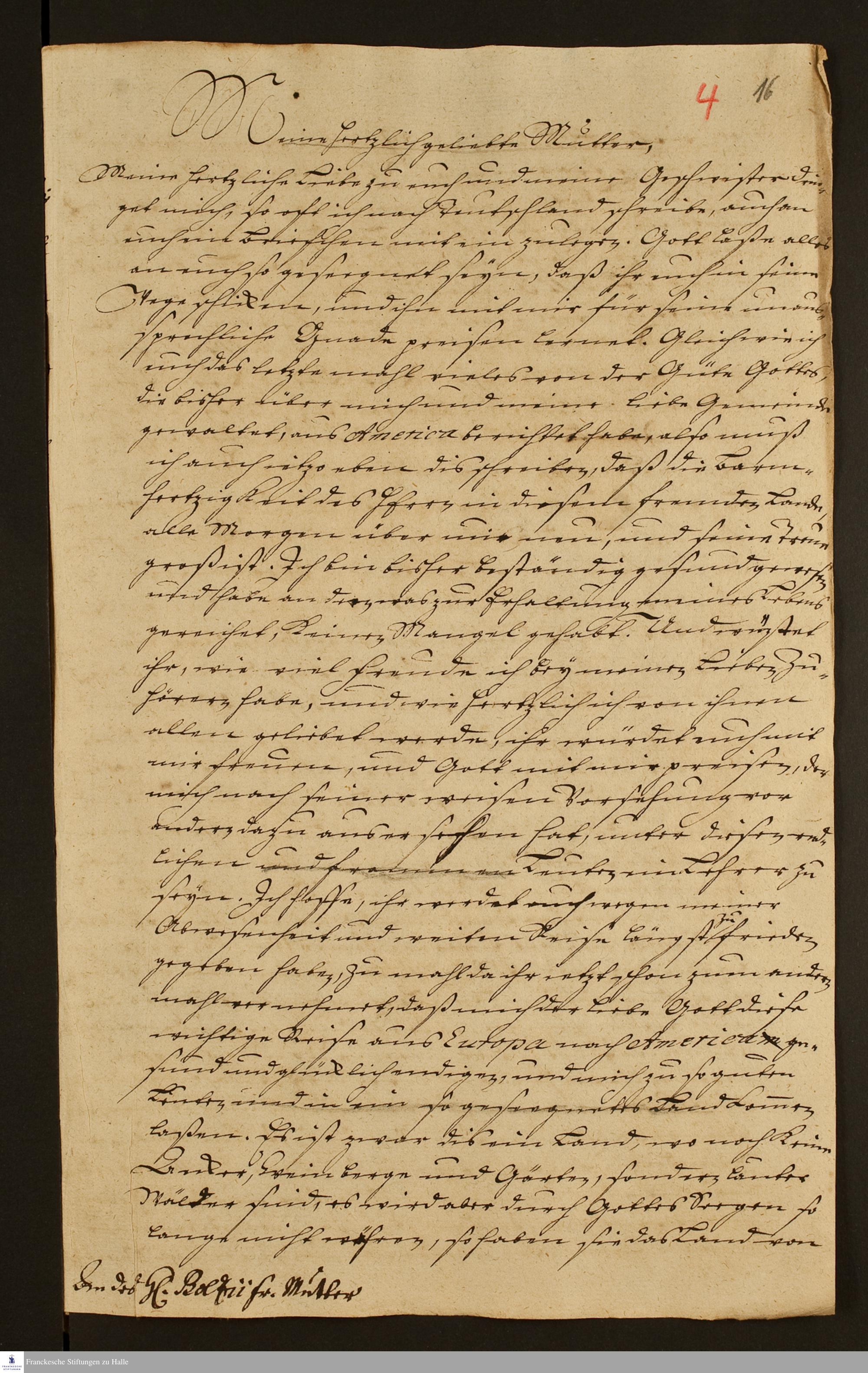 Brief von Boltzius an seine Mutter Eva Rosina, in dem er ihr das Land um Ebenezer beschreibt und sie und seine Geschwister zum Glauben ermahnt.