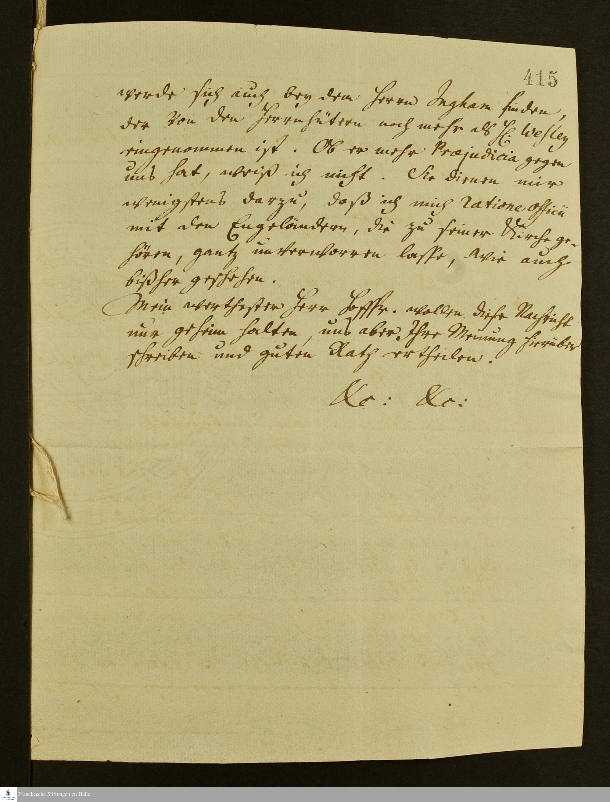 Auszug eines Briefes von Johann Martin Boltzius und Israel Christian Gronau an Friedrich Michael Ziegenhagen über John Wesleys Auffassung zur bischöflichen Ordination.