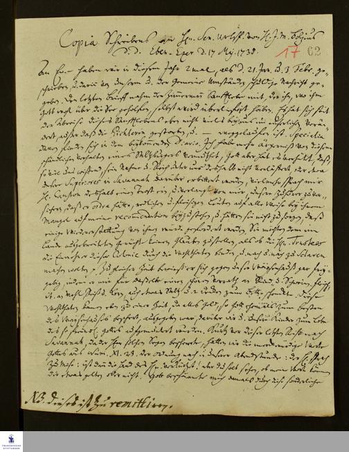 Brief von Johann Martin Boltzius an Samuel Urlsperger über die Versorgung der Salzburger und der Waisenhausinsassen mit Lebensmitteln sowie weitere Bauvorhaben in Ebenezer.