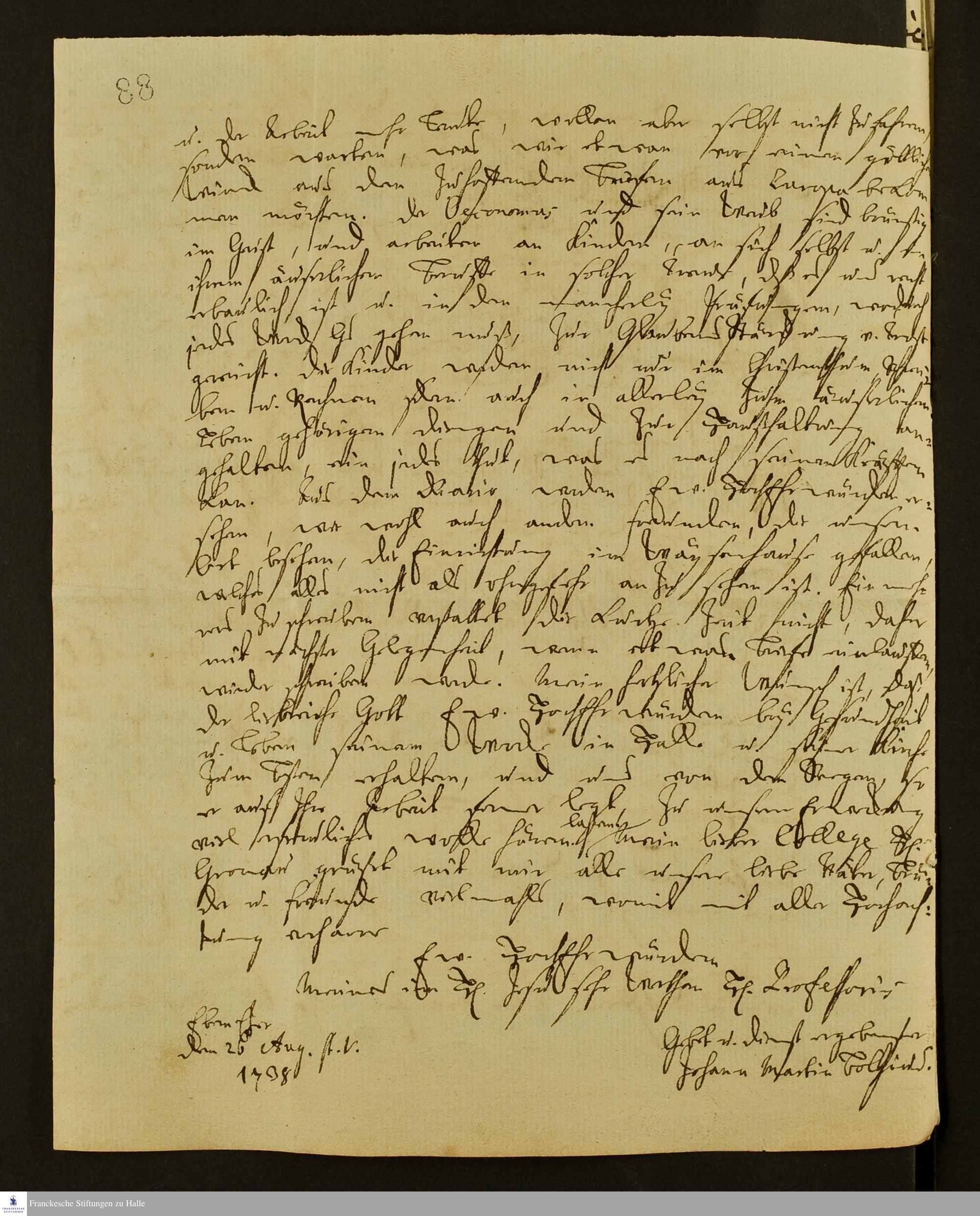 Brief von Johann Martin Boltzius an Gotthilf August Francke über Christian Ernst Thilos Vernachlässigung seines Berufs, den Fleiß der Salzburger sowie die Arbeit im Waisenhaus.